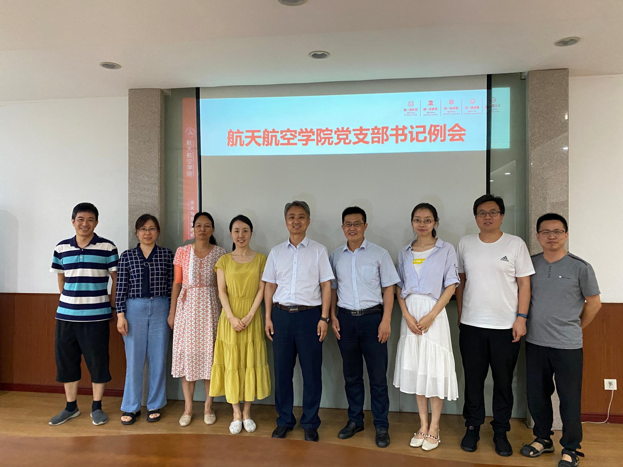 7月15日,航天学院召开教工党支部书记例会,学习传达学校第十三次党代会精神,总结上半年学院党建工作,研讨部署下半年工作。学院党委书记李小跃、副书记陈永华,全体教工党支部书记参加会议。会议由李小跃书记主持。