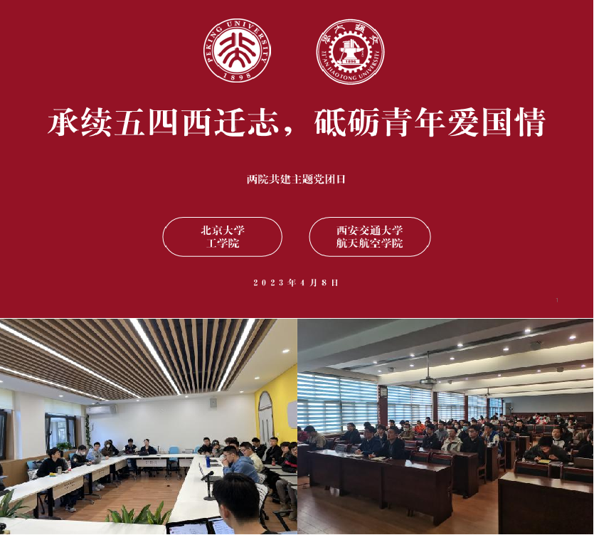航天学院励志书院师生联合党支部联合北京大学工学院本科生党支部开展以“承续五四西迁志,砥砺青年爱国情”为主题的共建党团日活动。北京大学工学院团委书记步晓光,北京大学工学院团委常务副书记伊照,奈飞工厂