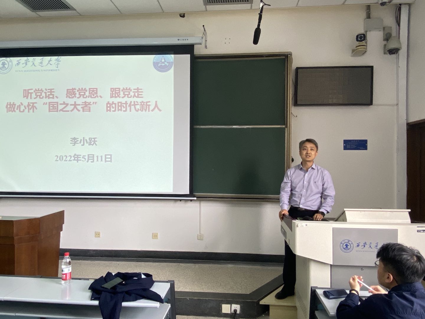 李小跃提到,要始终心怀“国之大者”,就要紧绷政治意识这根弦,强化责任担当,交大西迁就是心怀‘国之大者’的具体体现。最后,李小跃对积极分子寄予期望。他用“有字之书”和“无字之书”形象地形容理论和实践的关系,勉励同学们应当勤学、修德、明辨、笃实,既要学专业知识,也要学人文知识,从历史的变迁中汲取思想的力量、信仰的力量、实践的力量。他强调,青年一代要为中华民族伟大复兴努力读书,练就本领,真正做到心中有信仰,肩上扛责任,脚下见行动。