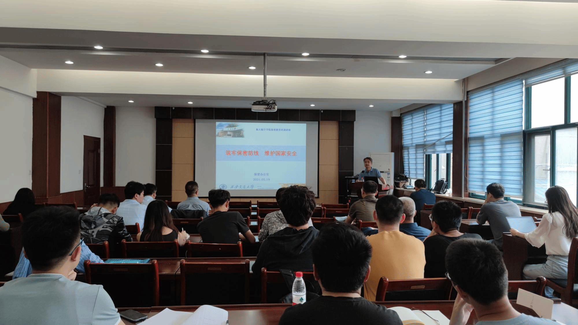 任明强主任以“筑牢保密防线,维护国家安全”为题,从保密基本知识、当面保密工作形势、信息化条件下失泄密事件的防范、我校保密工作情况、军工科研项目的保密管理、需要掌握的保密工作要点等六个方面做了全面、系统、深刻的保密培训。大量的案例为学院师生做好保密工作起到了很好的警示教育。