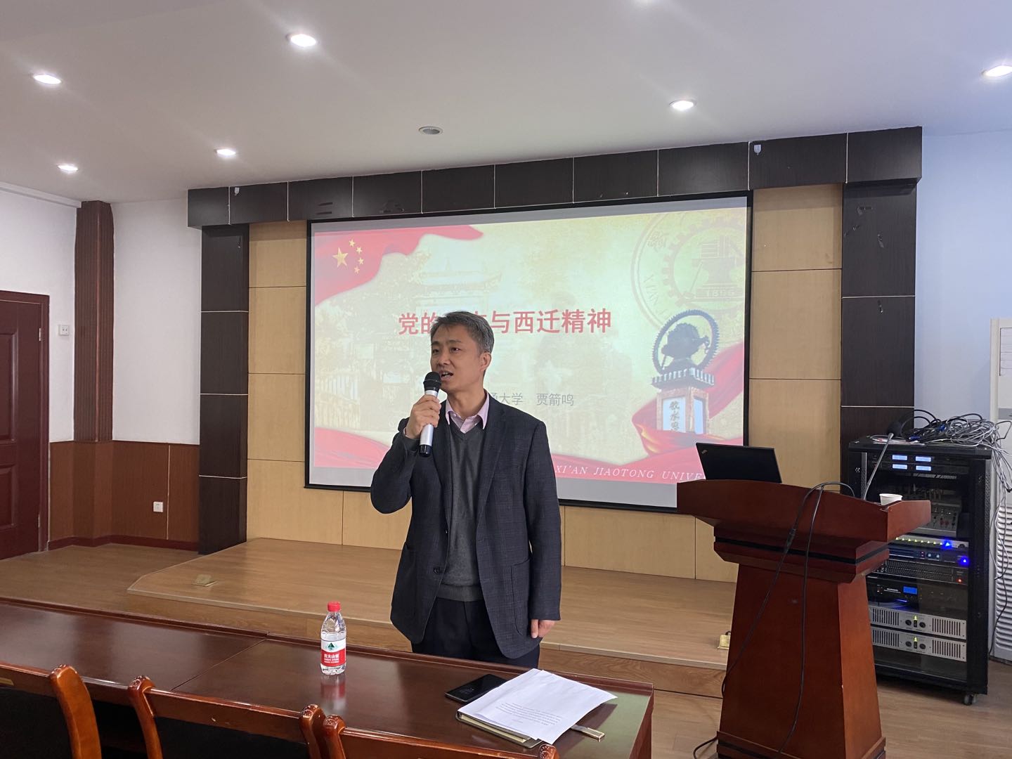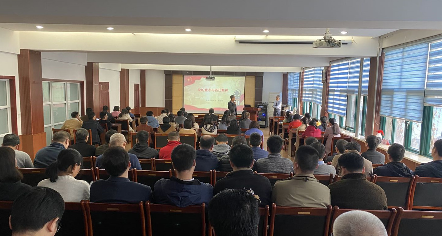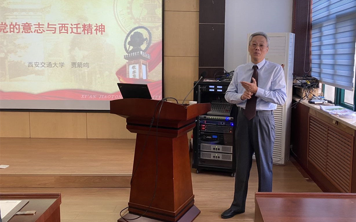 贾箭鸣老师娓娓道来,回顾了新中国建国初期工业建设和人才队伍建设所面临的局面,分析了当时学校建成支撑工业发展的万人规模大学、建成工业发展所亟需学科专业、结合工业实际全方位开展科研的紧迫历史任务。他引用了大量历史资料,深刻阐述了交通大学内迁的历史缘由,生动地讲述了陈大燮、仲兆琳、张鸿、朱城、唐照千等一批西迁先贤响应国家政策,放弃在上海优渥的生活条件,扎根大西北开展教学、科研工作的事迹,对西迁精神指引下学校坚持立德树人、坚持自主创新、坚持追求卓越所取得的工作成绩进行了概括和总结。贾老师指出,西迁精神永远在路上,爱国奋斗是交大人永不息肩的神圣使命,他号召老师们要传承弘扬西迁精神,在新时期做出新一代交大人的成绩。