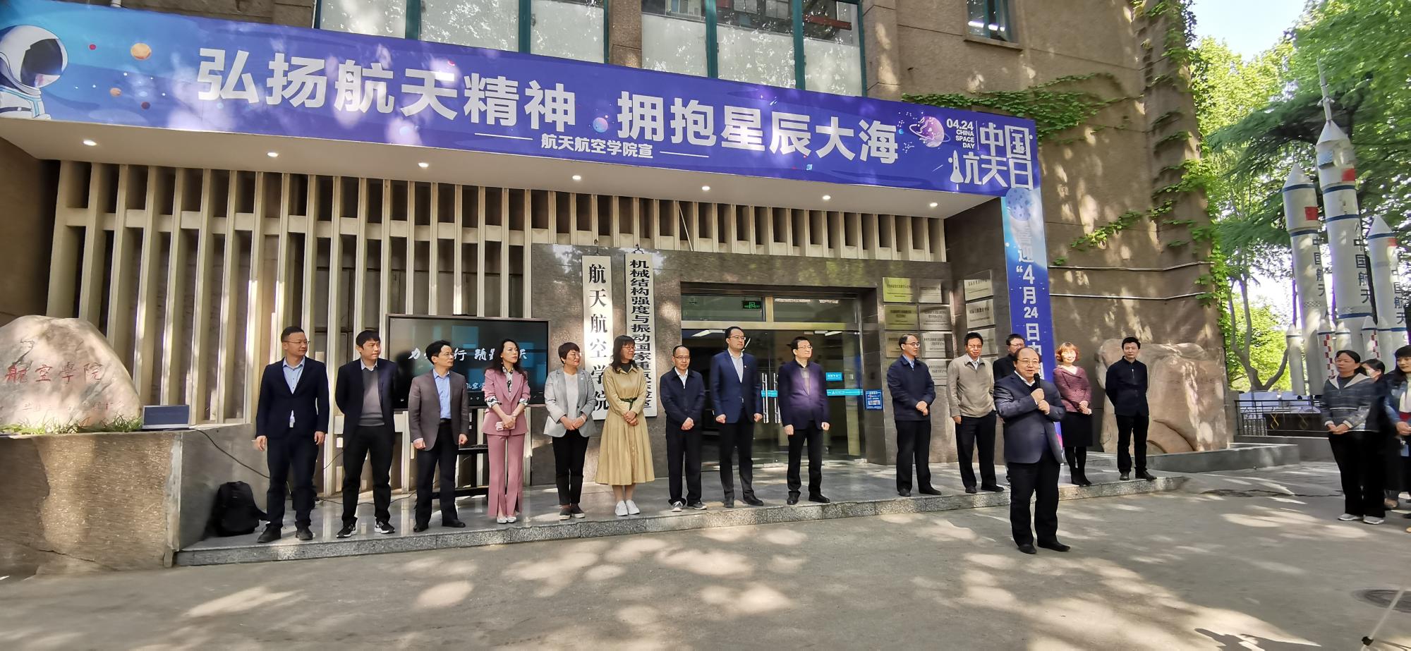 为庆祝中国航天日的到来,先后举办航天发展历程知识科普展、专家专报告、研究生学术年会、九所高校联合线上献礼等等活动。在启动仪式的同时,九所设有航天学院的高校,通过共同制作视频、图片并统一线上发布,共同为中国航天日献礼。