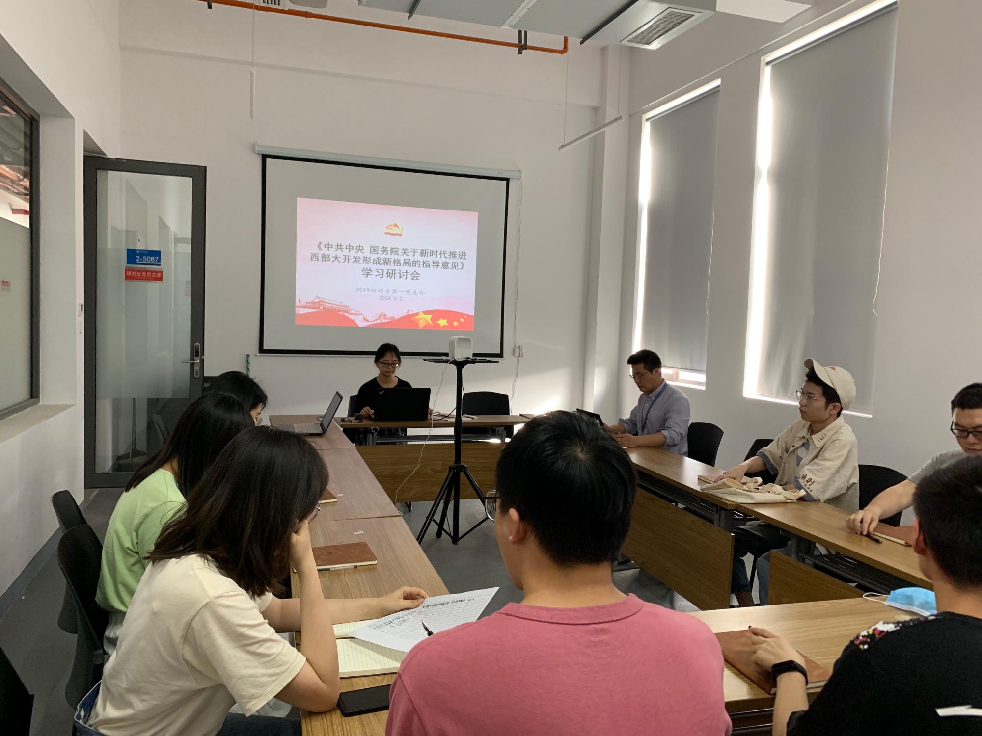 2019级硕士第一党支部在创新港2号巨构5087会议室开展主题生活会,学习研讨《中共中央国务院关于新时代推进西部大开发形成新格局的指导意见》(以下简称《意见》)。航天学院党委副书记陈永华列席会议并做指导。会议由党支部书记彭方澜主持。