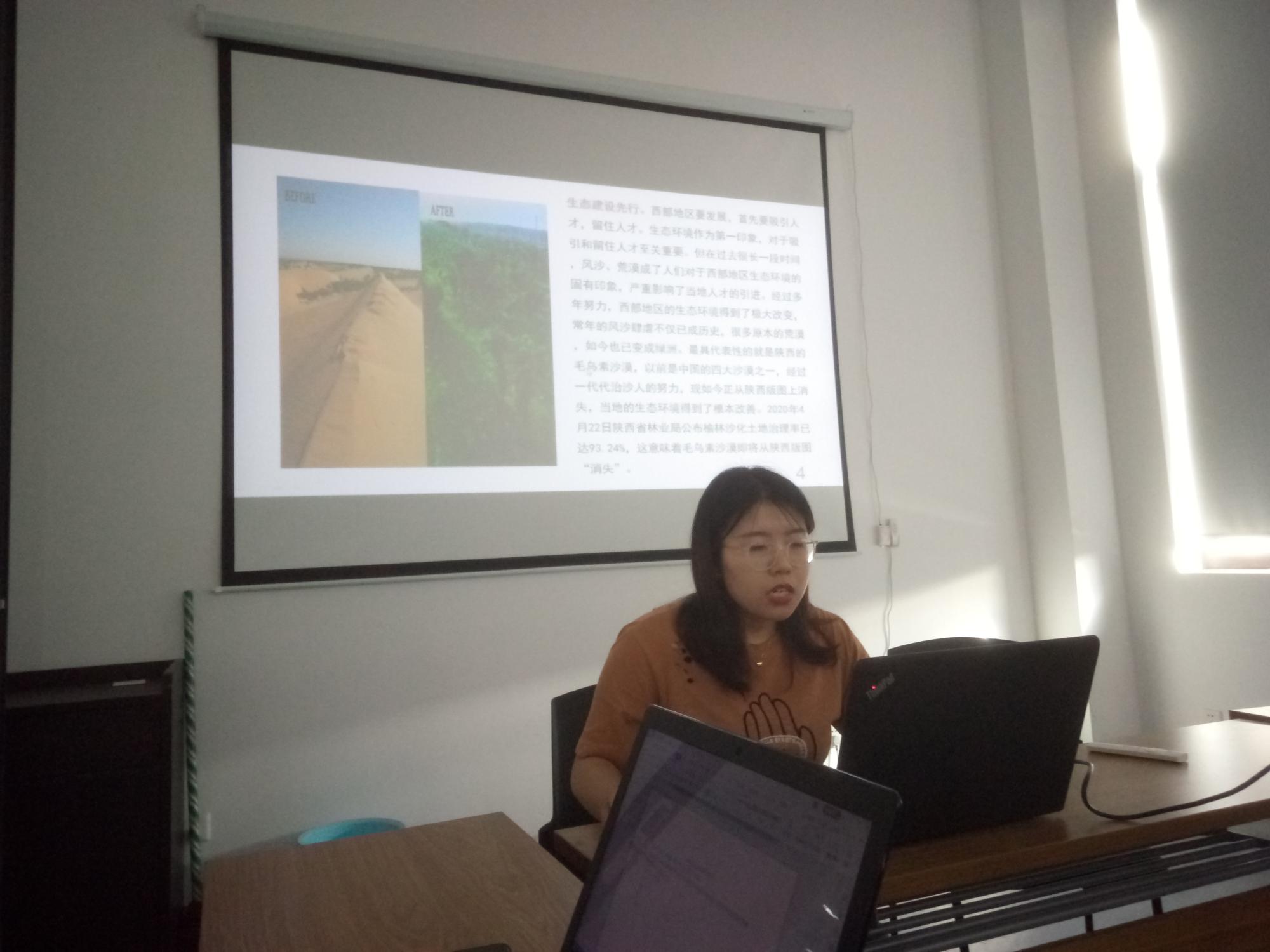 的研究生应该将自己的发展与国家西部大开发的战略融为一体,根据国家需求做出自己的贡献。同学们分享了自己在西部的家乡的发展与变化,例如内蒙古的交通基建改善,生态环境改善;鄂尔多斯由往日的资源开采过度到如今规范化开采,兼顾生态环境,做可持续发展。一些同学也坚定地表达了毕业后留在西部,为西部大开发做贡献的信心与决心。