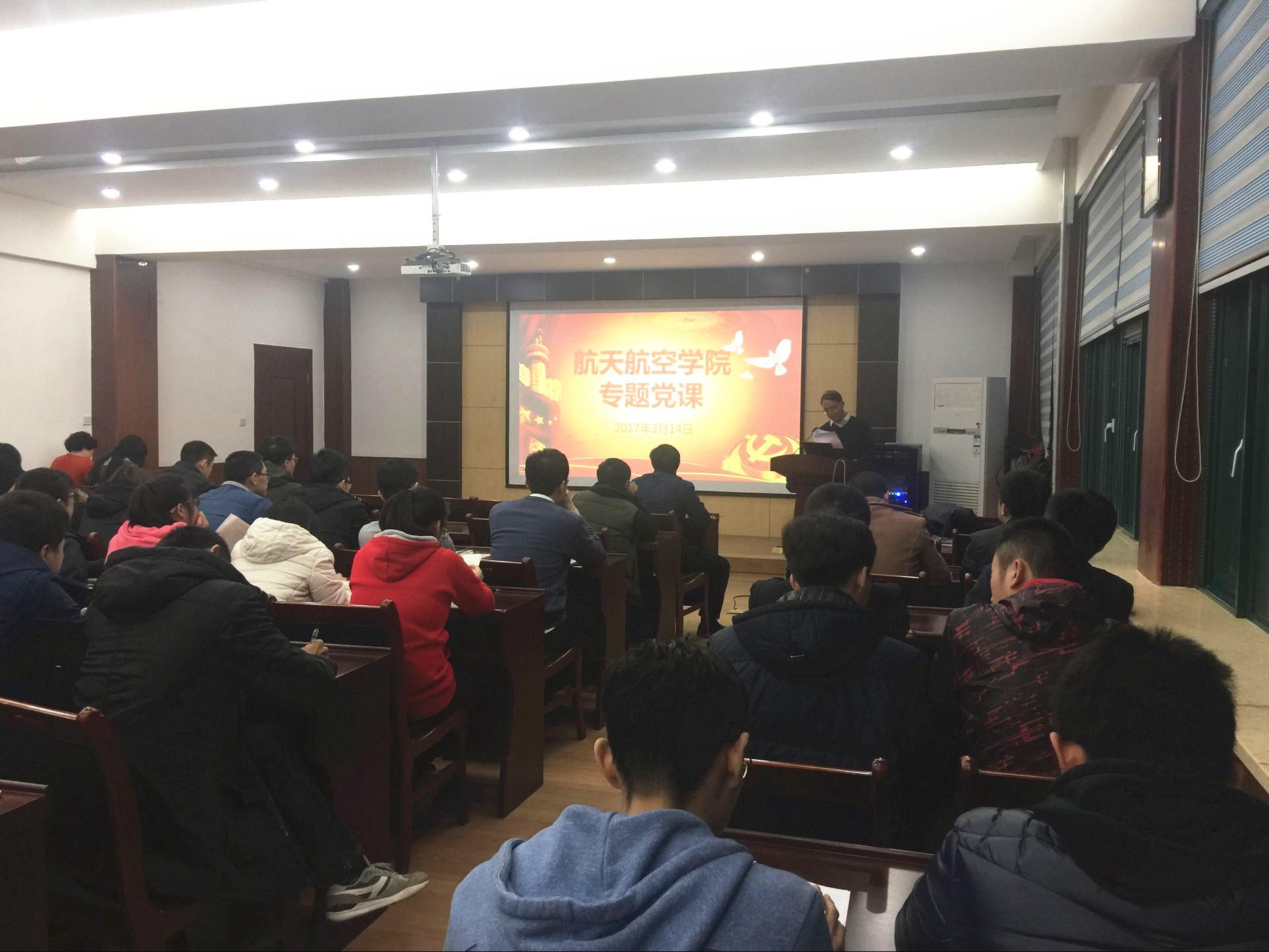 为了进一步贯彻落实全国高校思想政治工作会议精神,加强对学院党员的思想政治教育,深化“两学一做”学习教育效果,3月14日,航天学院党委书记徐自力教授为学院的党员们上了一堂党课。学院教工党员和学生党员参加了此次学习。