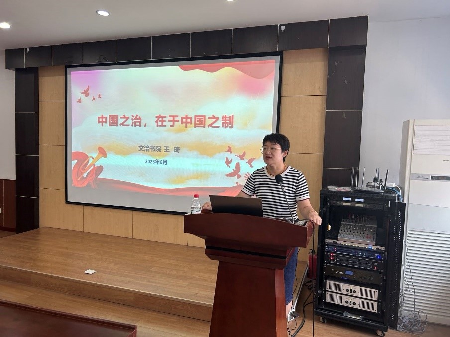 王琦主任为同学们讲授了《中国之治,在于中国之制》的主题党课,从制度自信的角度深入阐释了中国特色社会主义制度是什么、从哪里来、好在哪儿。通过对比资本主义制度体制和社会主义制度体系,论证了中国特色社会主义制度的优势。最后,结合中华民族5000多年的文明史,探寻了中国特色社会主义制度的历史渊源,将文化自信与制度自信自然而然地联系起来。