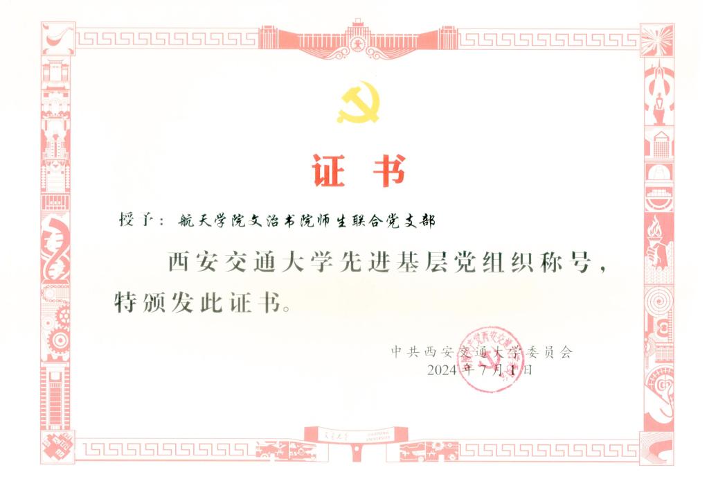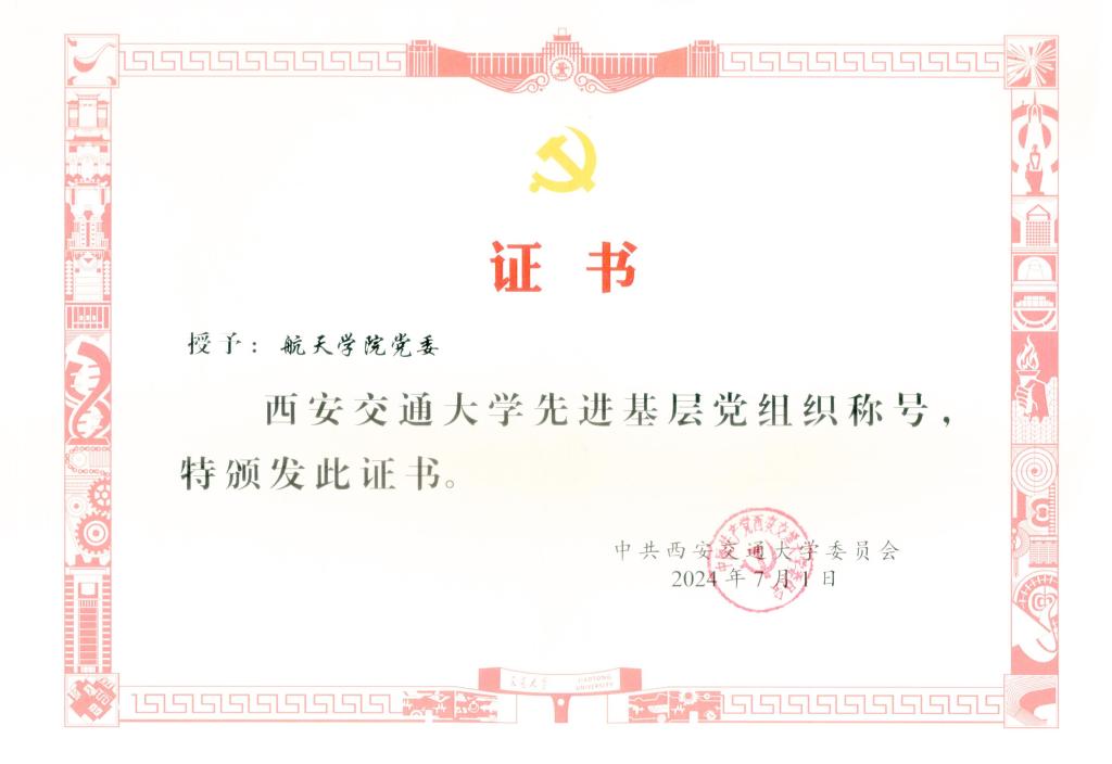 精神文明建设先进单位、学院应用力学党支部获批创建全国高校党建工作样板支部,博士航空宇航党支部获评全国高校“研究生样板党支部”,共计25个学生党支部获评学校 “十佳党支部”、“特色党支部”荣誉称号,6个教工党支部通过“五好”党支部创建验收。