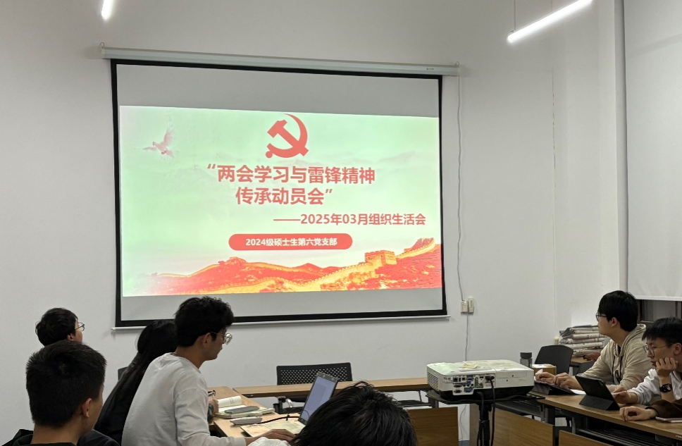 为进一步加强党支部建设,提升党员思想政治素质,航天学院2024级硕士生第六党支部于3月24日在2号楼5087会议室召开3月份组织生活会。本次会议聚焦“学习两会精神,传承雷锋精神”,会议由支部组织委员王少多主持,全体党员及积极分子参加。