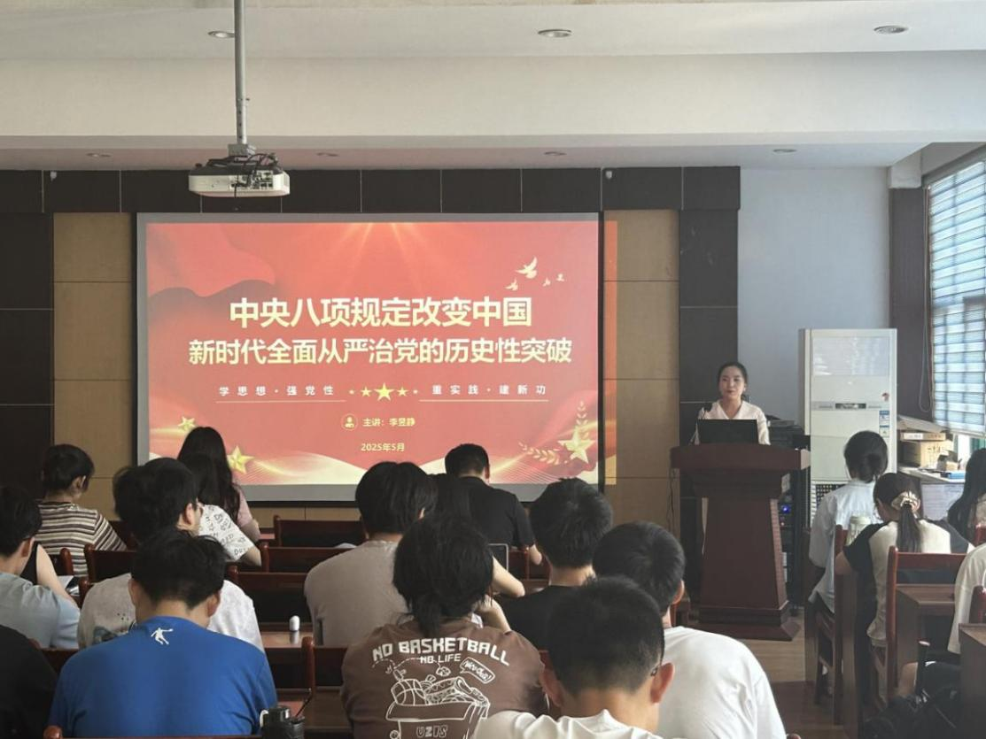 党委副书记李昱静为师生作中央八项规定精神学习教育专题辅导报告,学院60余名本科生发展对象及党员同期参加党课学习。
