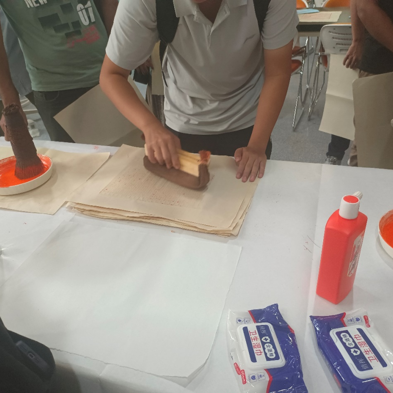 活动最后,大家展示了各自完成的印刷作品,有的印有古籍文句,有的为经典插画。每一张都带着手工的温度与独特的个性,也成为此次文化体验的纪念。同学们纷纷表示,虽然活动时间不长,但收获颇丰,不仅学会了一项传统工艺,更在实践中体会到中华文化的独特韵味和匠心精神。
