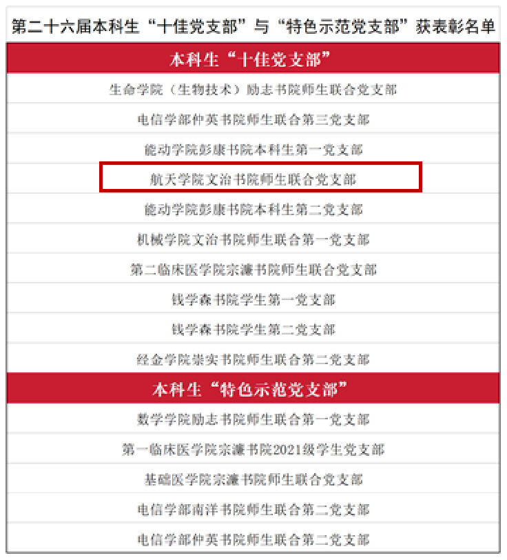 航天学院文治书院师生联合党支部荣获校“十佳党支部”