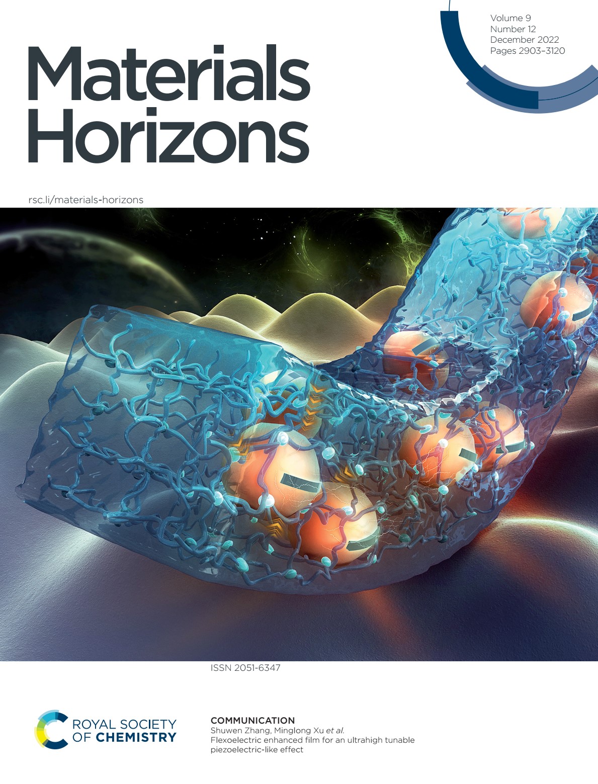 上述研究成果以“Flexoelectric enhanced film for an ultrahigh tunable piezoelectric-like effect”为题,近日发表在工程技术领域权威期刊《Materials Horizons》(IF=15.717)(2022, 9, 2976-2983)上,并被选为2022年第12期封面论文;论文的第一作者为奈飞工厂