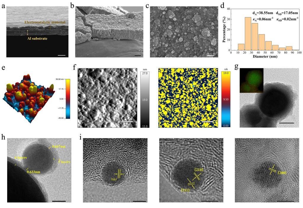 该研究发现通过高度弯曲WS2纳米片可使其层间距大幅度拓宽,从而引发强烈的晶格形变,进而暴露出更多的原子空位及缺陷。除了作为WS2纳米片弯曲生长的基底以外,金属W内核使得催化材料的整体导电率提升了4.5倍。在纳米球壳基面上,氢与硫(H-S)以及氢与钨(H-W)结合的吉布斯自由能分别为0.357eV与-0.145eV。相较于平整的W@WS2异质结构,氢在弯曲球壳上的结合更接近平衡态能量。此外,WS2球壳上的W位点展现出了最强的催化活性。该研究还发现,微结构设计有助于调控氢吸附结构、异质界面结构以及费米能级附近的态密度,进而实现更快速高效的氢释放与电子吸附。该研究提出的纳米球团聚型纳米多孔范德华异质结构可解决传统纳米片堆叠所造成的离子嵌入通道封闭的挑战。实验表明,该催化剂的反应电位为161mV(10 mA/cm2时),其在强酸电解液中反应时有着出色的稳定性(持续100 h)以及同类材料中最小的Tafel斜率(34.5 mV/dec)和最大的电化学反应面积(62.2 mF/cm2)。该工作提出了一种实现多位点、高导率TMDs的研究思路,其不仅有助于推动电催化析氢技术的发展,还将丰富电池、电化学电容器以及驱动器的电极材料选择。