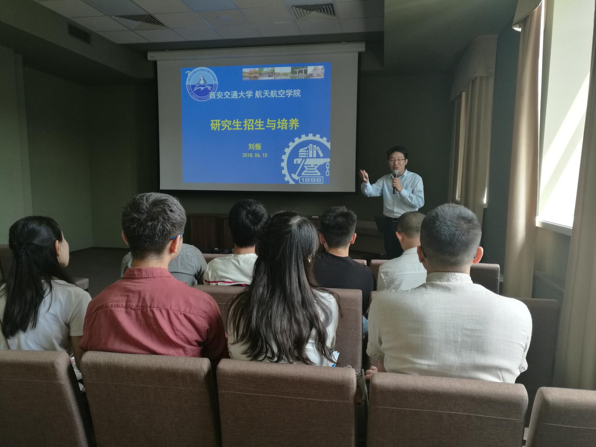 海外人才招聘的宣讲,刘振主任做了关于博硕士招生与培养的宣讲,对海外学子赴我校工作和学习的相关政策进行了详细解读。