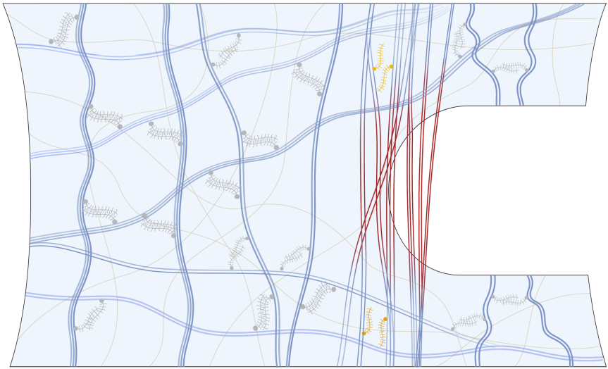 当裂纹在胶原软组织中扩展时,胶原纤维在裂尖解卷曲,沿拉伸方向重新定向,从裂纹表面抽出形成桥接区阻碍裂纹扩展(图2),该桥接过程可通过断裂力学中的牵引-分离曲线(traction-separation curve)描述。