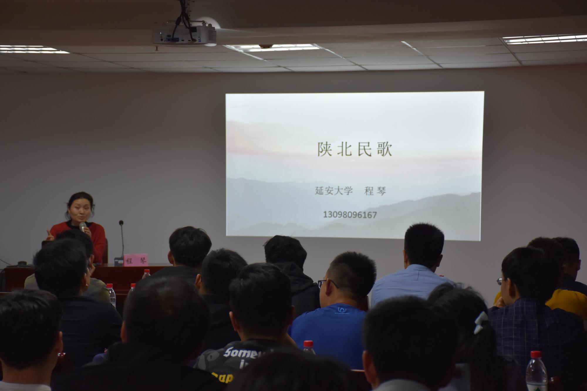 傍晚,延安大学程琴副教授老师带领师生们共同学习唱陕北民歌,陕北民歌昂扬着黄土地上泥土的芳香,流淌着黄河儿女最通俗的词汇和最亮丽的激情。她是我们黄土地的母语和家园,更是我们黄土文化的特色和精粹。在陕北,人们的喜、怒、哀、乐哪一种情感,都可以用民歌的形式来表达。无论是站在崇山峻岭之巅,还是走在弯弯曲曲的山道里,或者行进在一马平川的大路上,到处都可以听到顺风飘来的悠扬歌声。陕北民歌的学习加深了师生们对于陕北名额和文化脉络的了解,这对于我们传统文化传承有着积极的影响。