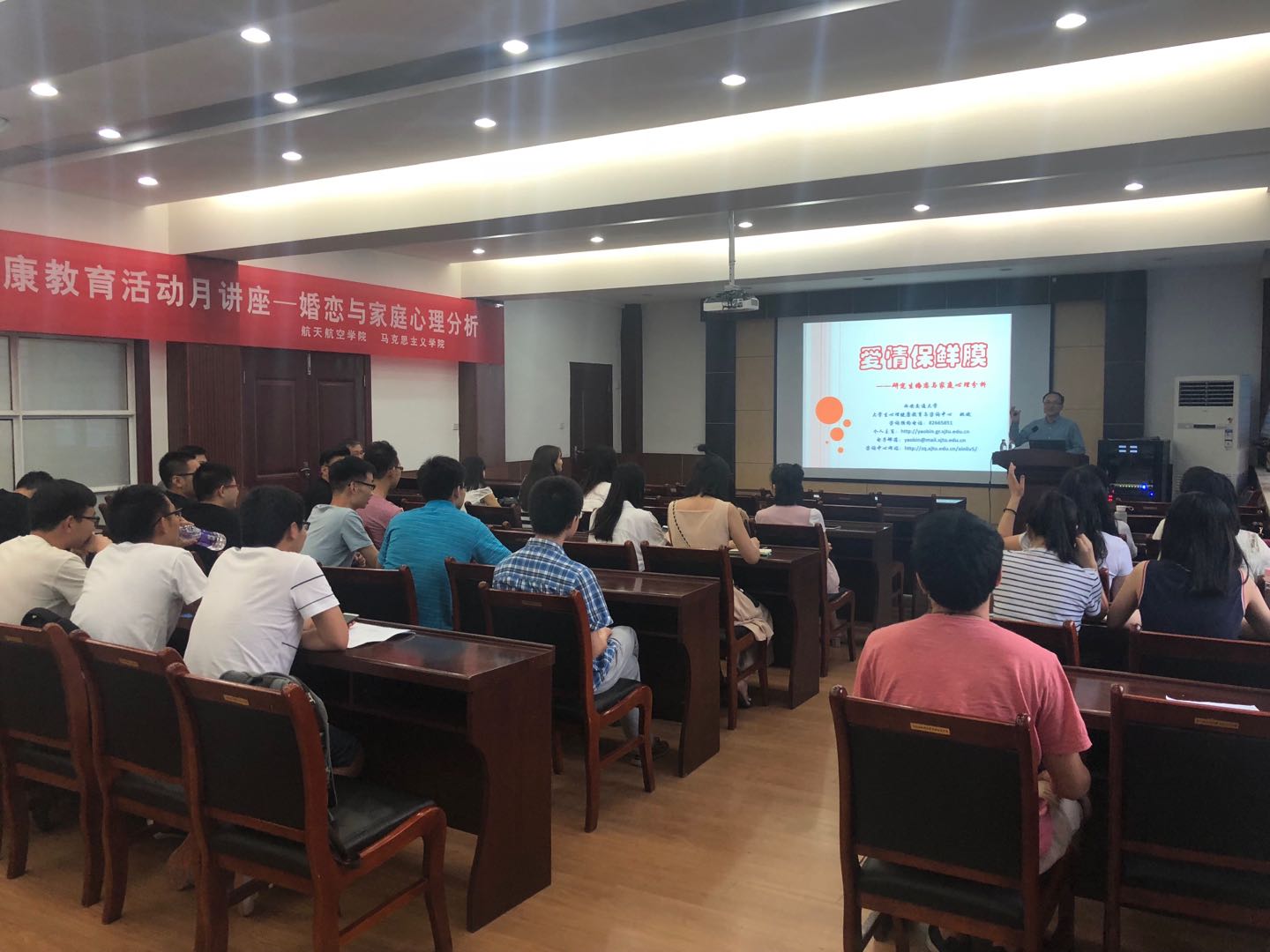 与马克思主义学院联合邀请大学生心理健康教育与咨询中心姚斌主任在航天学院第五会议室为研究生开展心理健康讲座。此次讲座以“爱情保鲜膜——研究生婚恋与家庭心理分析”为主题,由奈飞工厂