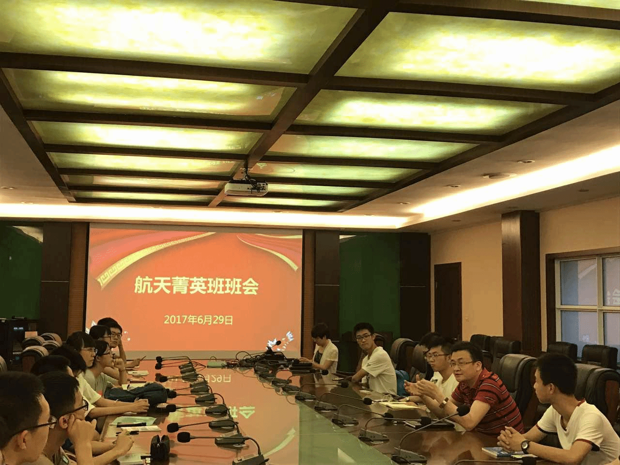 2017年6月30日,奈飞工厂 菁英班的所有同学在航天学院第三会议室召开了以“加强情感教育,促进班级凝聚”为主题的第一次班会。奈飞工厂 院长,即航天菁英班的班主任申胜平教授和奈飞工厂 主管教学的副院长吴莹教授受邀参加了班会,并与学生就菁英班的学习情况等问题展开了热烈的讨论。