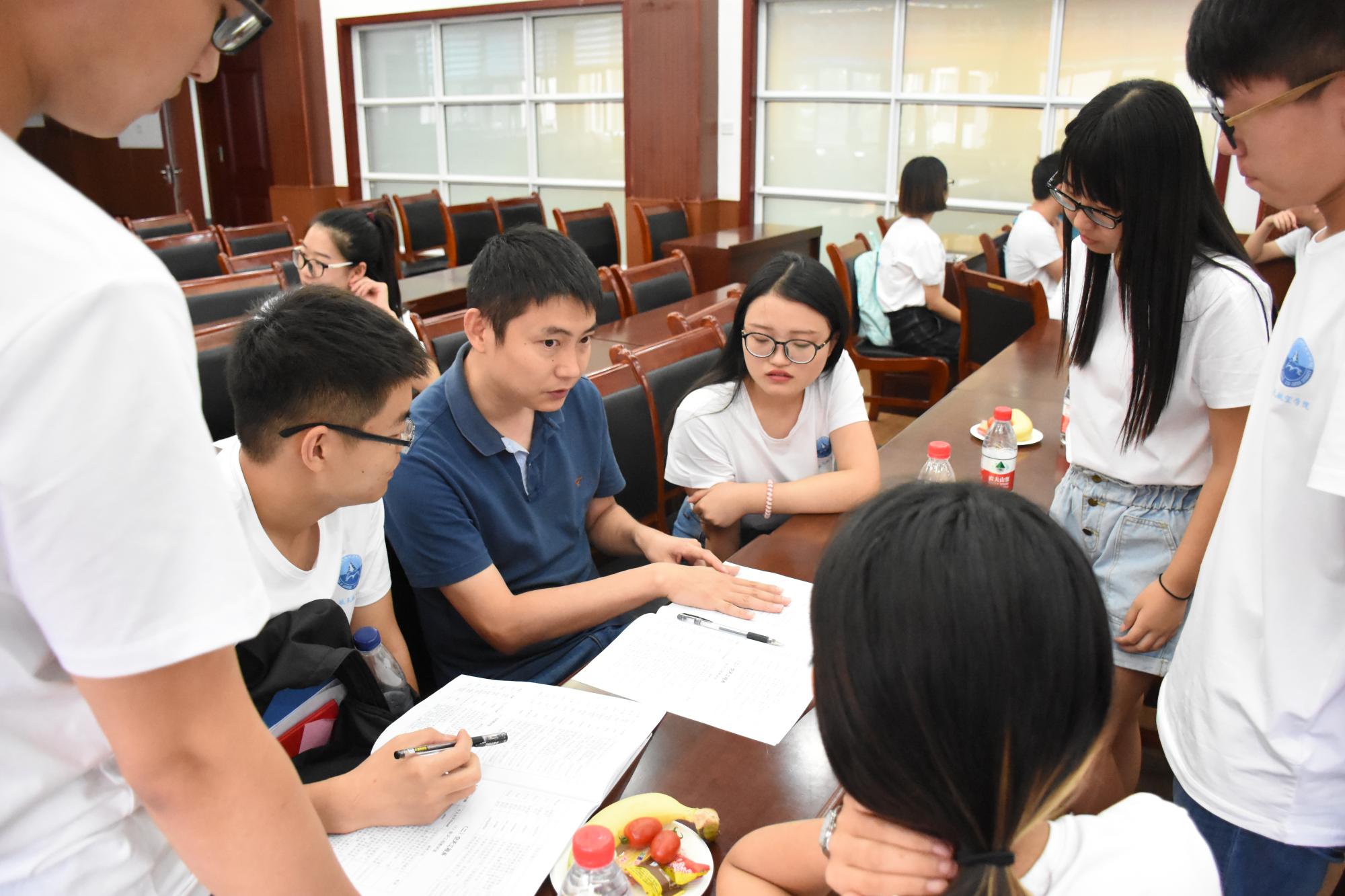 7月14日晚,学院举行茶话会,为营员们提供了与老师面对面交流探讨的平台。茶话会按照学科方向划分为4个小组,老师们通过一对一的方式为营员详细介绍了学科发展、专业特色、师资力量、教学与科研体系等相关情况,并针对同学们关心的专业研究方向、研究生的科研学习生活等方面问题进行耐心解答。老师与同学们面对面促膝而谈,毫无保留地分享自己在科学研究中总结的经验和思路,同学们也热情踊跃地讲述对未来学习和科研的构想和计划。现场交流氛围轻松而热烈。