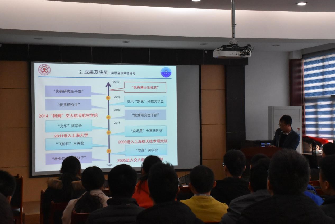 12月8日下午,“筑梦双一流,领航新时代”优秀研究生标兵分享会在航天学院教一楼第五会议室举行。本次分享会邀请到2017年度优秀研究生标兵获得者、航空宇航专业博士马国亮,2017年度优秀研究生标兵获得者、航空宇航专业硕士田明明,2016年优秀研究生标兵、航空宇航专业博士张舒文三位同学为大家分享成功经验。出席本次活动的有研究生辅导员李昱静老师、2017级博士、2016级硕士以及2017级硕士,分享会由2016级硕士范永晨主持。