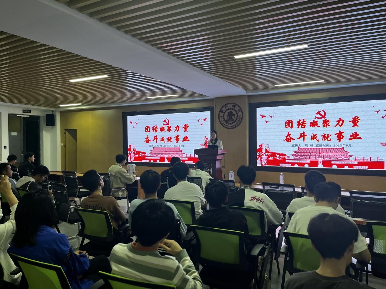 第一党支部书记熊峰在分享中以党的二十大主题为切入点,结合党史、新中国史、改革开放史、社会主义发展史分析了团结奋斗的历史逻辑、理论逻辑、实践逻辑。并通过分享对于“要何种团结?”“为何而奋斗?”两个问题的认识理解,分析阐释了团结奋斗的内涵。最后,熊峰提到,虽然与会的同学们来自五湖四海,但现在同属一个党支部或团支部,希望大家能够在真正意义上做到团结奋斗,把党支部、团支部建设得更好,个人也能够在支部生活中有所成长、有所进步。