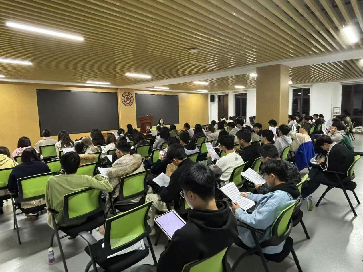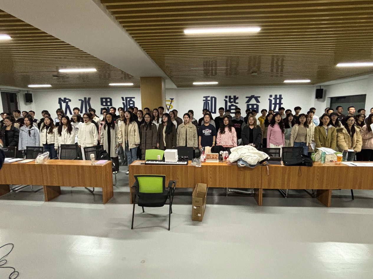 在紧张的排练期间,队员们克服了课程繁忙、实验任务重的困难,认真参加每次排练。在排练室里,他们的声音交织成一首首动人的旋律,每一个音符都凝聚着汗水与智慧。最终在舞台上以精湛的表现和默契的配合,赢得了观众的热烈掌声和由衷的敬意。不仅展示了各自学院的文化特色,更体现了集体合作的魅力与力量。