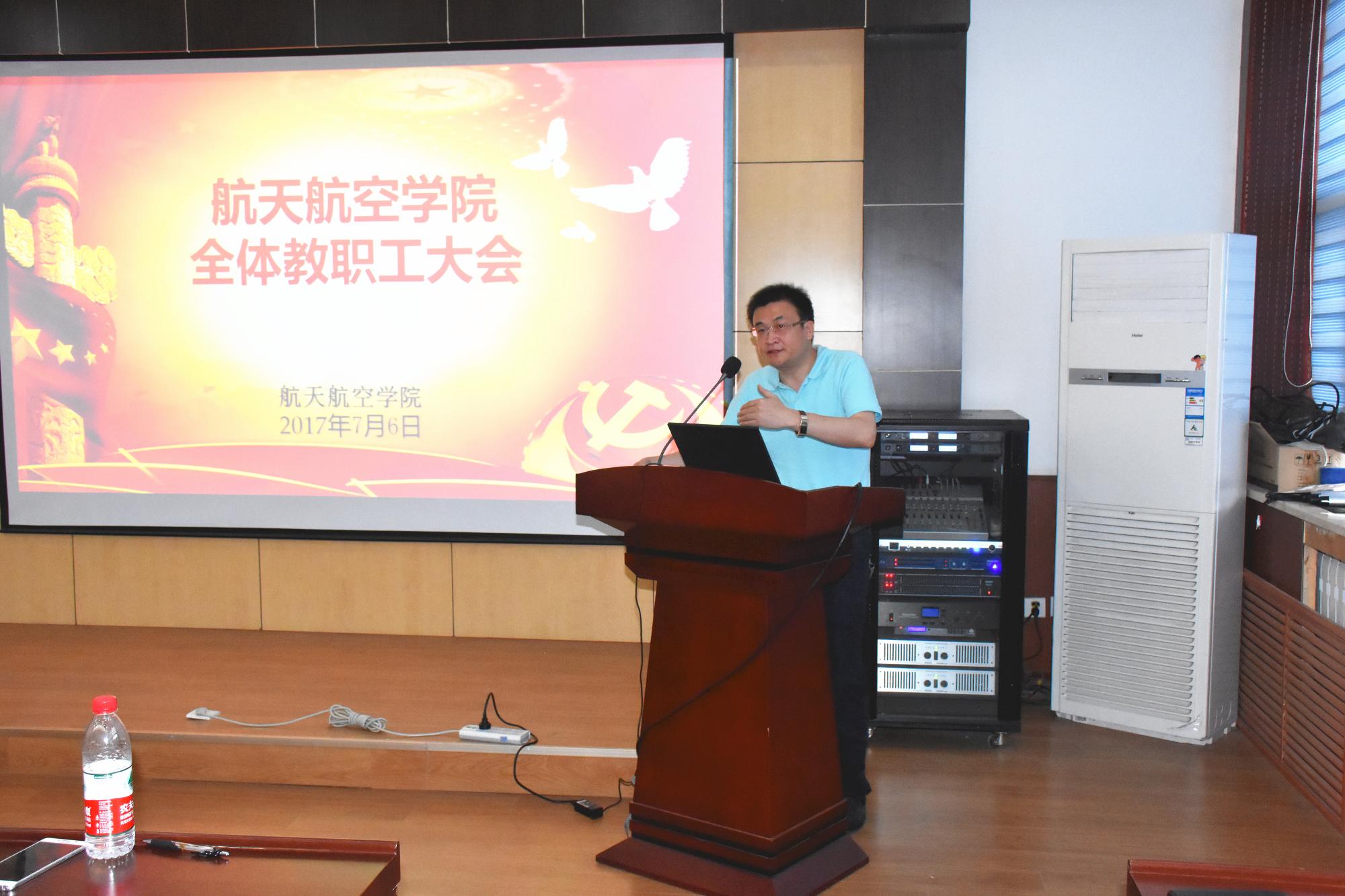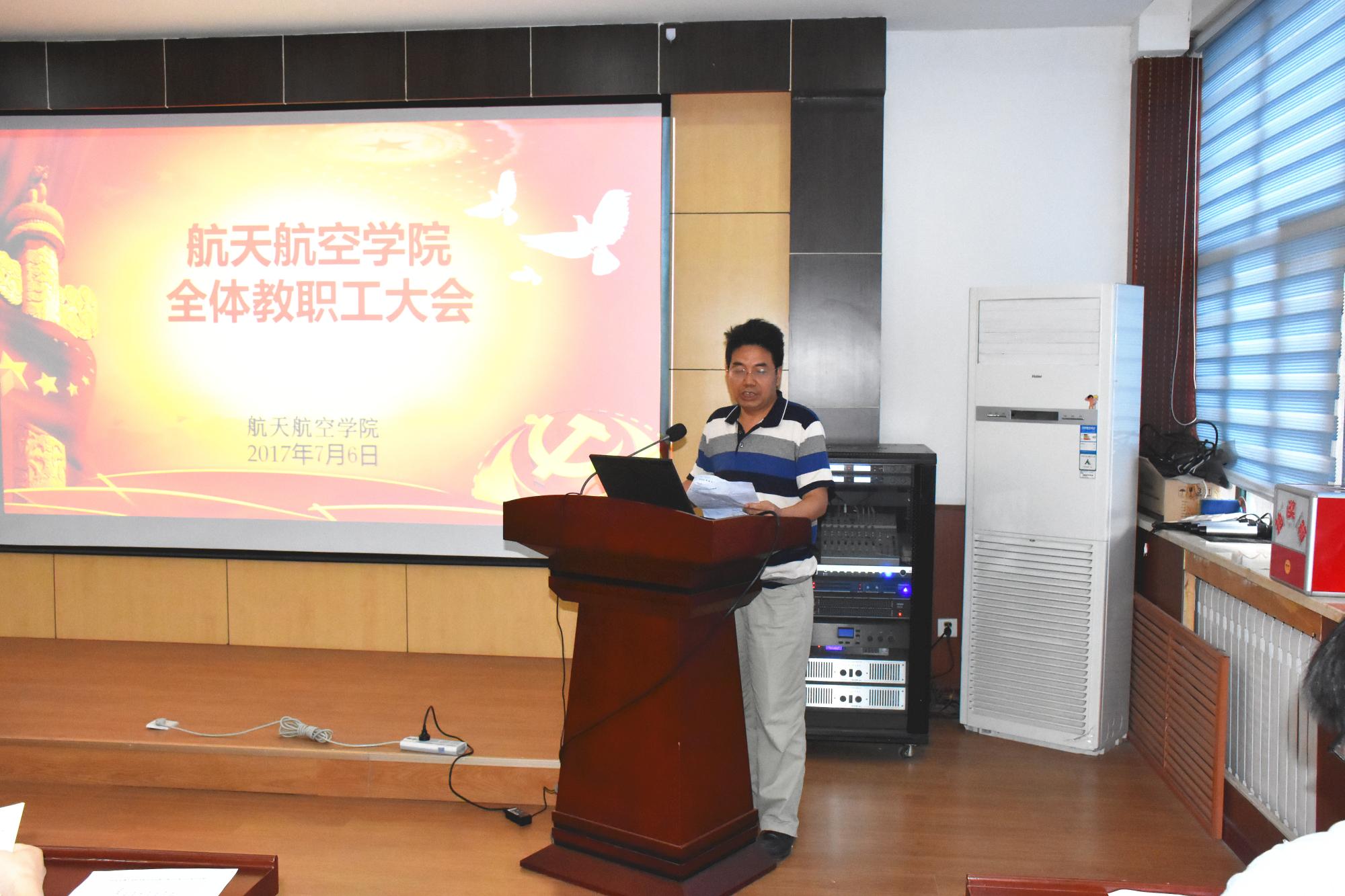 2017年7月6日,航天学院工会换届选举大会在学院二楼会议室顺利召开。航天学院在校全体教职工参加了此次大会。会议由学院分党委书记徐自力教授主持。