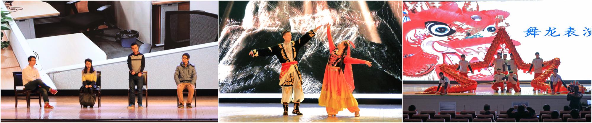 最后进入节目表演环节。深情款款的歌曲串烧,风趣幽默而又贴近生活的研究生话剧表演,青春洋溢、活力四射的啦啦操表演,妙趣横生的相声表演,充满浓郁的西域风格的新疆舞蹈,逐渐将颁奖盛典的气氛烘染得越来越活跃,一个个朝气蓬勃的小伙子挥舞着蜿蜒起伏的巨龙,更是将颁奖盛典气氛带入高潮,同时也为本次颁奖盛典画上了圆满的句号。