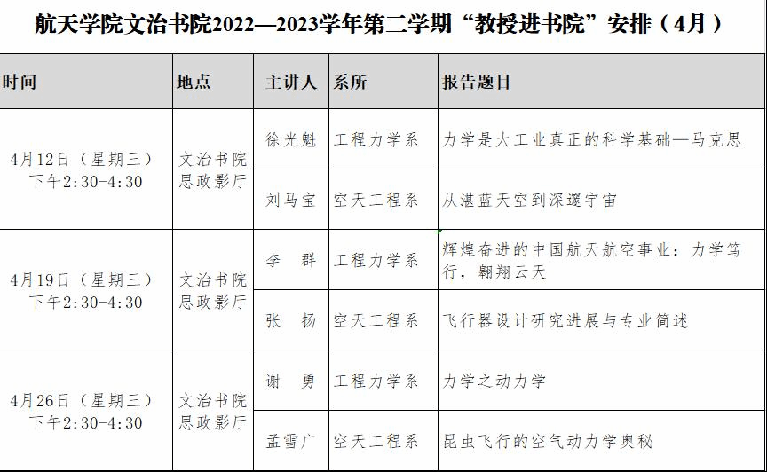为进一步做好双院协同育人工作,服务学生专业学业成长和发展,航天学院文治书院联合开展“教授进书院”活动。