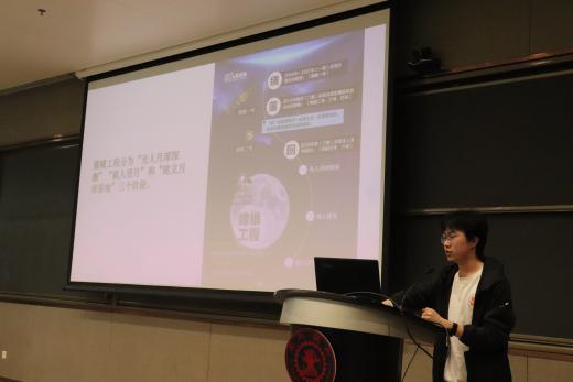 活动伊始,科生代表程琦峰介绍以“格物致知 叩问苍穹”为主题的中国航天日基本情况,他从“航天”二字的由来切入,介绍了中国航天日的起源,以及中国航天67年波澜壮阔的发展历程,最后致敬为中国航天事业立下赫赫战功的英雄前辈以及无数为航天事业默默奉献的科技工作者们!