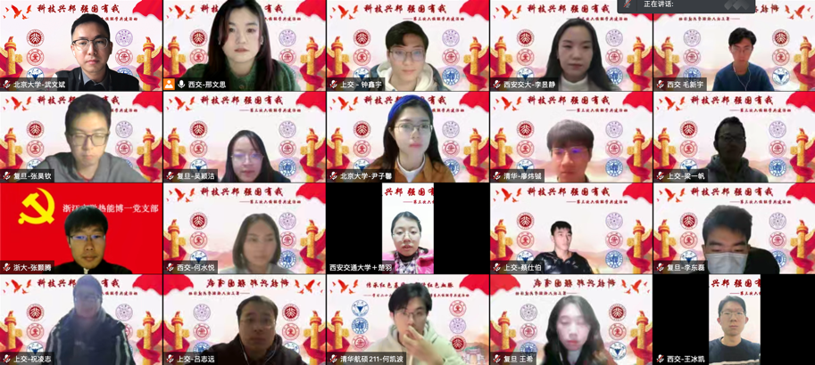 研工组组长柳占立,复旦大学材料科学系党建指导老师韩画宇,上海交通大学航空航天学院党建指导老师高瑾出席本次活动。来自六所高校的180余名学生党员通过线上方式参加活动。