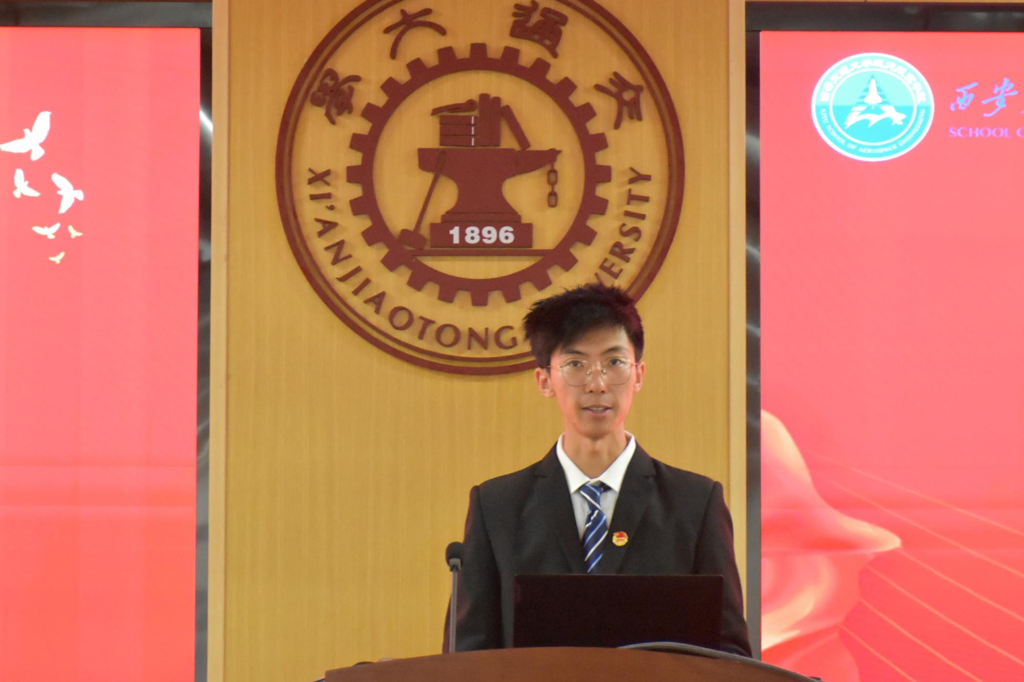 航天学院党委副书记陈永华在讲话中指出,作为新时代高校研究生,肩负起实现高水平科技自立自强的时代重任,勇于担当作为。他对在场研究生代表提出了三点希望:一是要坚持正确政治方向,坚定不移听党话跟党走;二是树立远大目标,坚定不移瞄准“四个面向”开展科学研究;三是心怀国之大者,坚定不移争做交大西迁新传人。他寄语同学们要将西迁精神融入血液,砥砺前行,团结和带领同学们为中华民族伟大复兴事业奉献青春力量。
