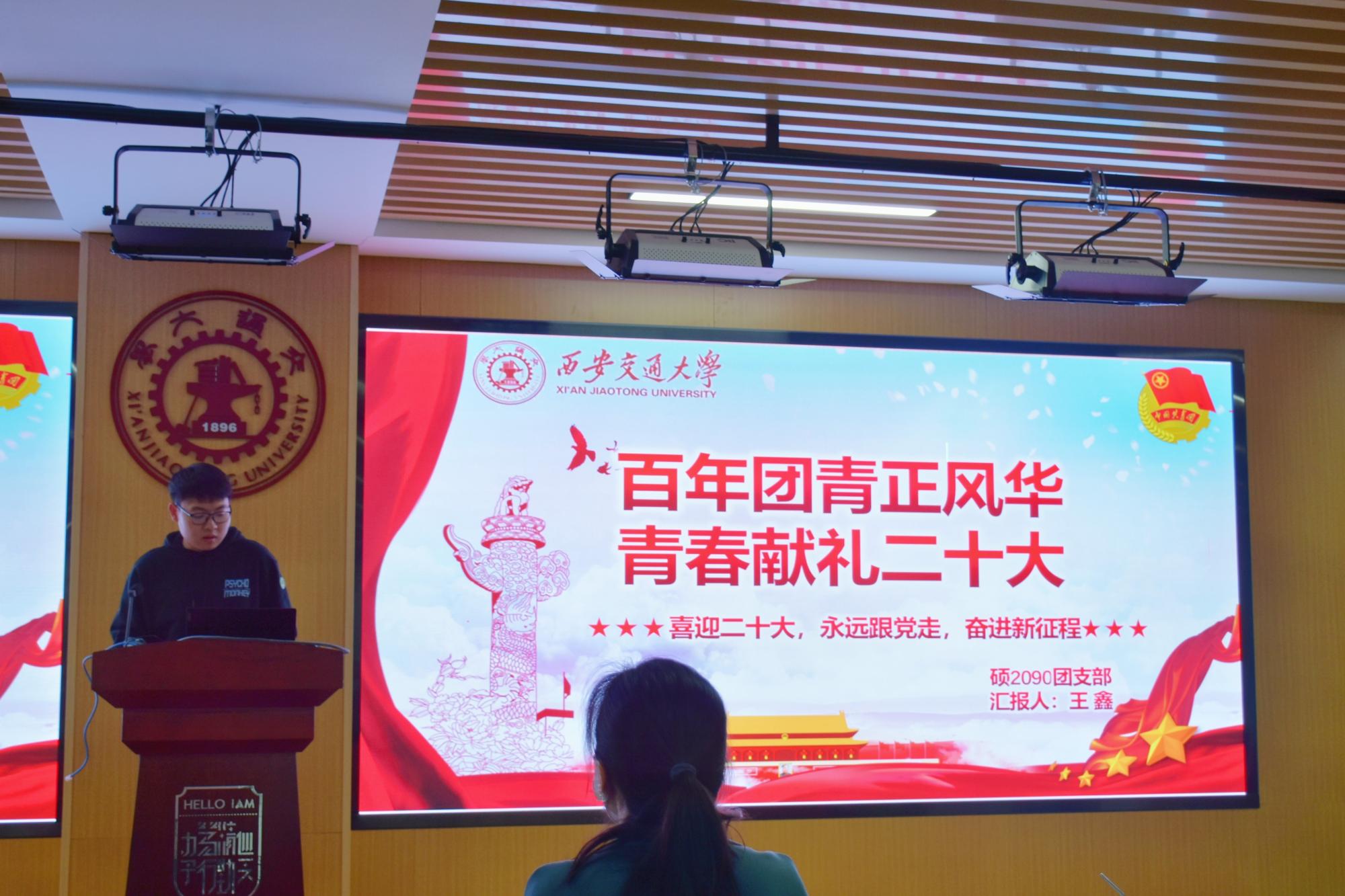 硕2089团支部开展“青春献礼,喜迎盛会”活动,以昂扬的斗志,澎湃的激情迎接党的二十大;联合长安大学研究生支教团为商南县鹿城中学八年级学生开展线上云宣讲活动,以行动弘扬西迁精神,引导青年爱党爱国。硕2090团支部组织观看《我和我的新时代》,让支部成员直观地感受祖国的蓬勃发展,深刻地领悟故事背后的时代精神。