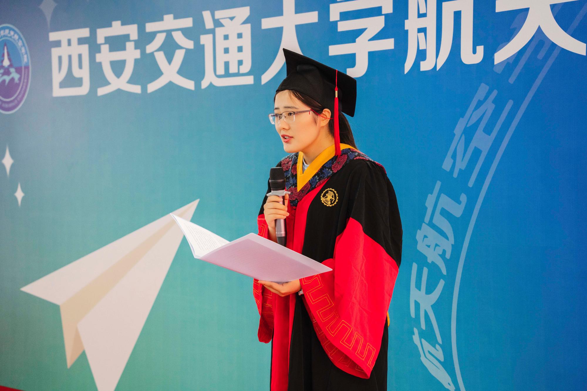 西迁精神传扬奖获得者,博1811班赵迎松同学代表学院2022级研究生毕业生发言,她谈到,读研期间通过参与科研项目、学科竞赛、国内外学术会议,不仅锻炼了自己的科研能力,还提高了统筹能力、沟通能力和团队协作能力,拓宽了学术视野,毕业后她选择了到中国航天科技集团有限公司第四研究院工作,将勇敢地承担起交大人所应担负的国家使命和社会责任,以实际行动为母校增光添彩。