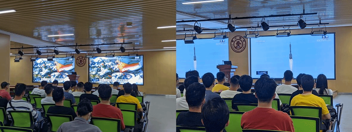 2022年6月5日10时44分,搭载神舟十四号载人飞船的长征二号F遥十四运载火箭在酒泉卫星发射中心点火发射,约577秒后,神舟十四号载人飞船与火箭成功分离,进入预定轨道,发射取得圆满成功。航天学院组织学生就本次发射直播进行集中观看。