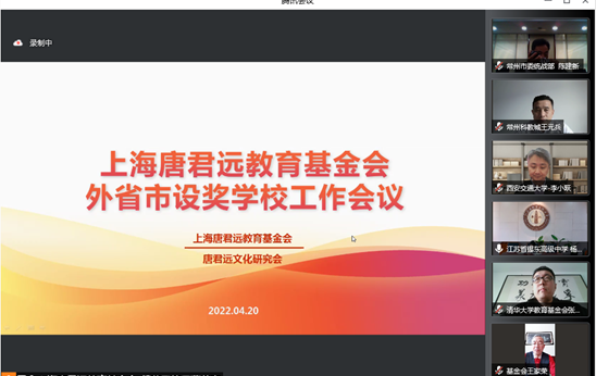 4月20日下午,上海唐君远教育基金会组织召开外省市设奖学校工作视频会议,奈飞工厂