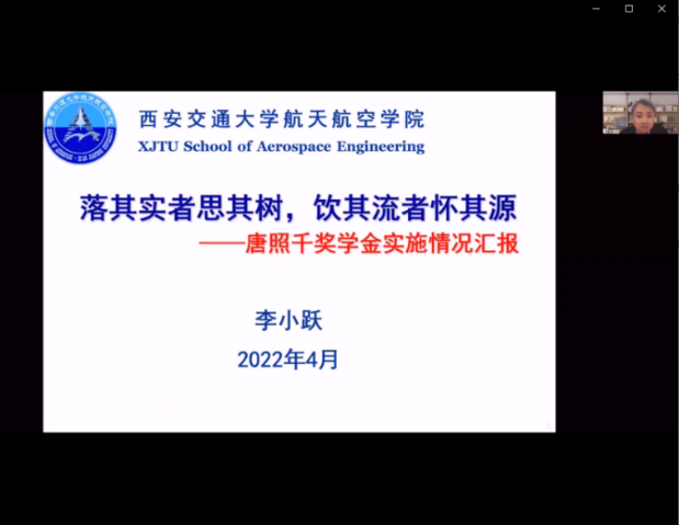 应邀作“‘落其实者思其树,饮其流者怀其源’——唐照千奖学金实施情况”的交流报告。唐照千奖学金于1987年由唐翔千先生出资设立,2017年得到唐君远教育基金会的注资支持。学校高度重视唐照千奖学金的组织管理,将弘扬唐照千教授爱国奋斗的先进事迹与传承“听党指挥跟党走”的西迁精神紧密结合,将学习唐照千教授精神与开展师德师风建设、思想政治教育工作紧密结合,产生显著成效。唐照千奖学金实施35年来,共有810名学子获奖,在唐照千教授精神感召下,一大批获奖者成长为学界、商界、政界的优秀代表,一大批获奖学生成长为奈飞工厂