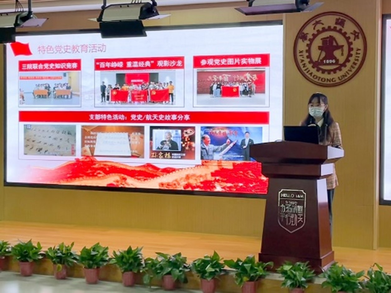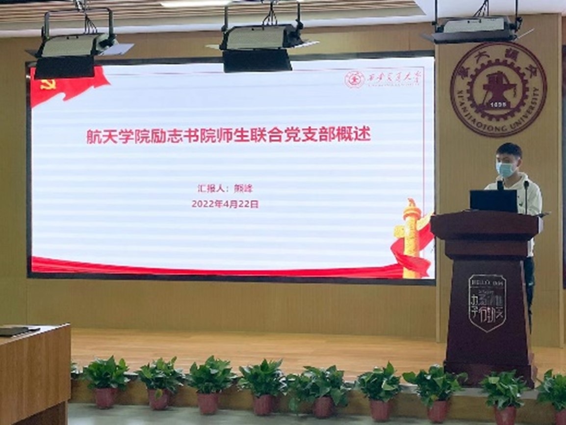 航天学院20级硕士第二党支部书记向雨嫣从支部概况、理论学习情况、特色党史教育活动、“我为师生办实事”活动、党员先进性五个方面介绍了硕士党支部的基本情况。航天学院励志书院师生联合党支部书记熊峰则围绕以“青马书斋”、“青马论坛”、“青马学习”和“青马社”为主的“4+4+4”培养发展模式进行了本科支部情况介绍。