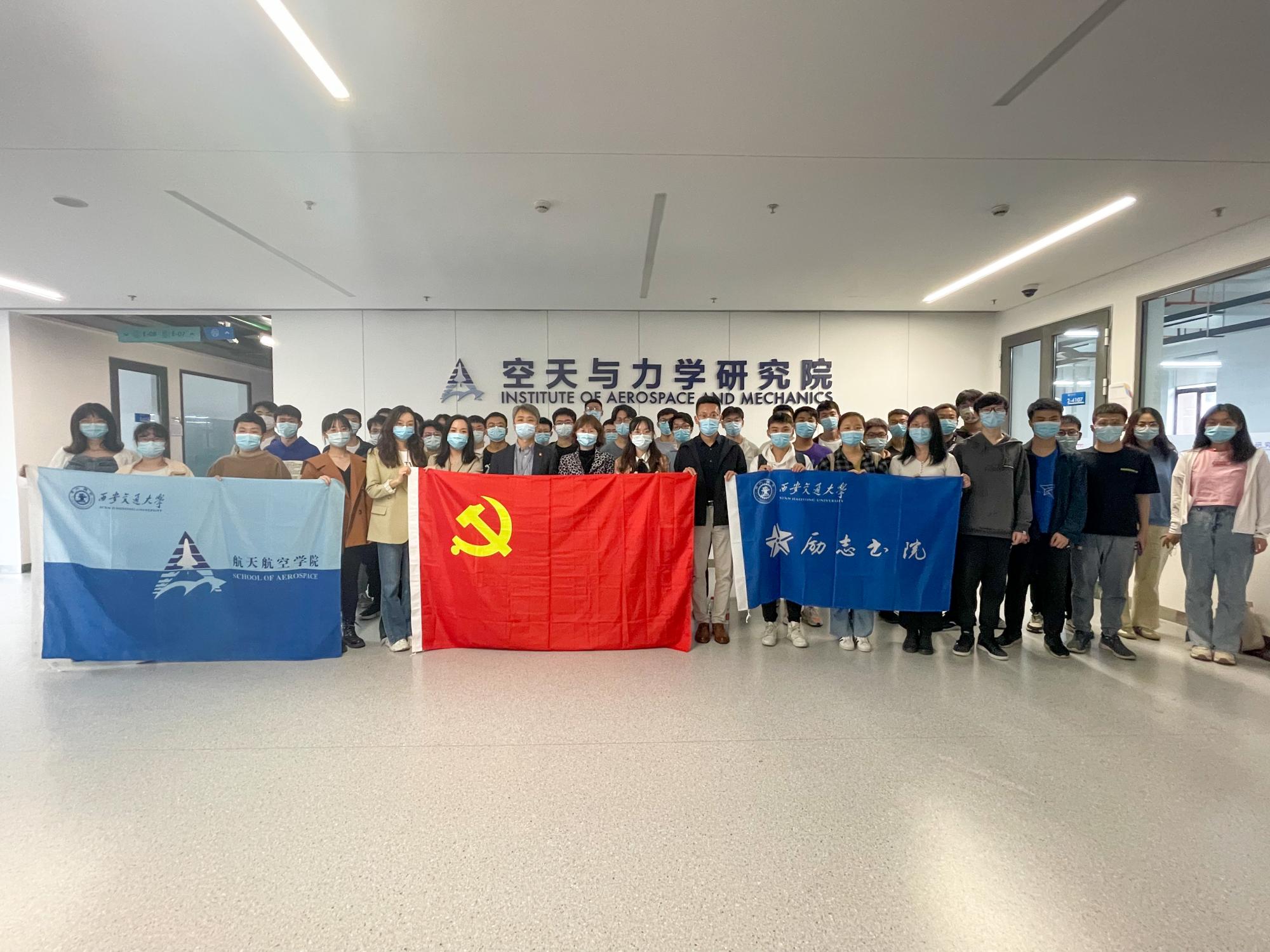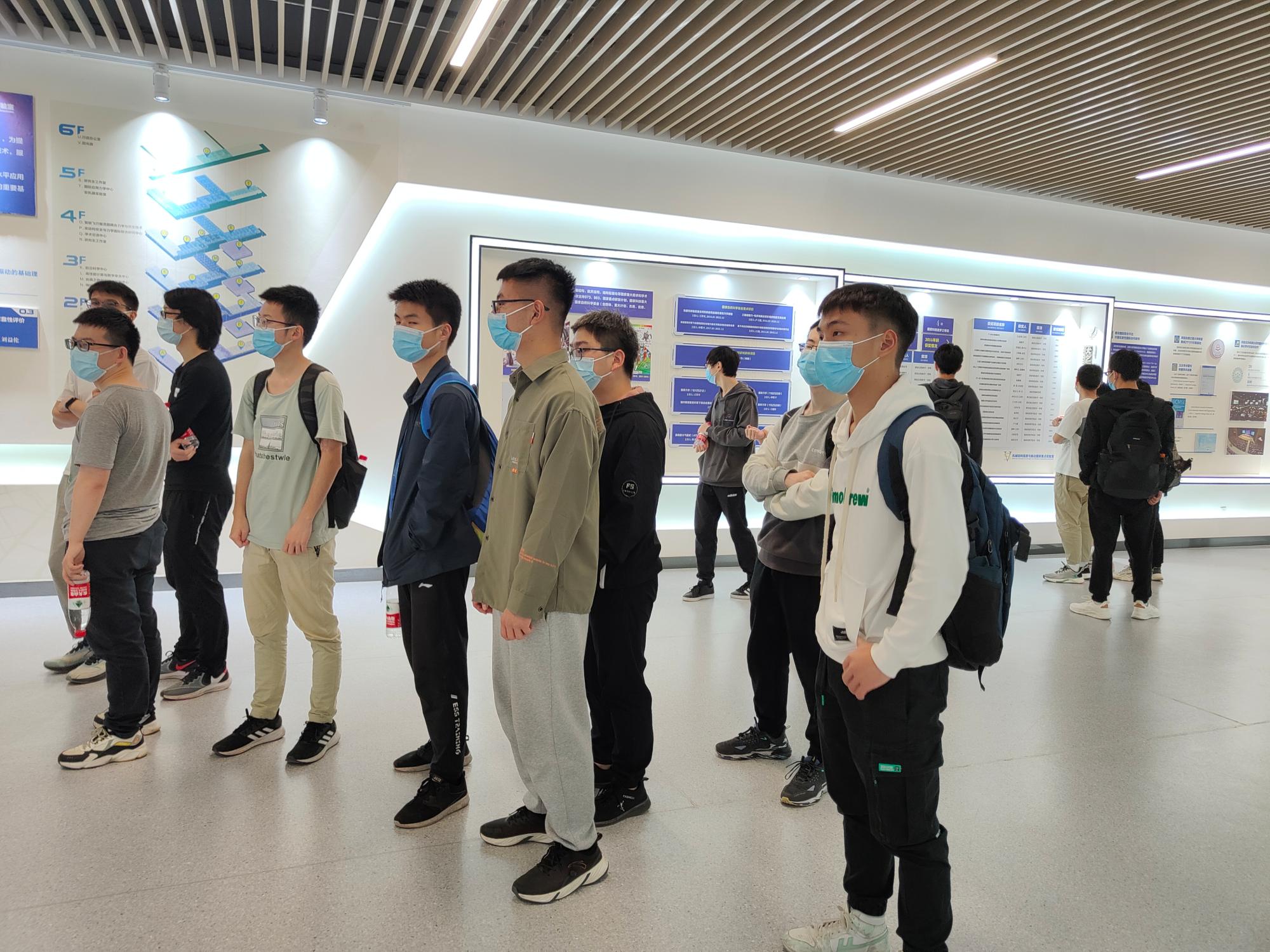 励志书院师生联合党支部的同学们在研究生的带领下参观了创新港空天与力学研究院的各大平台以及机械结构强度与振动国家重点实验室。