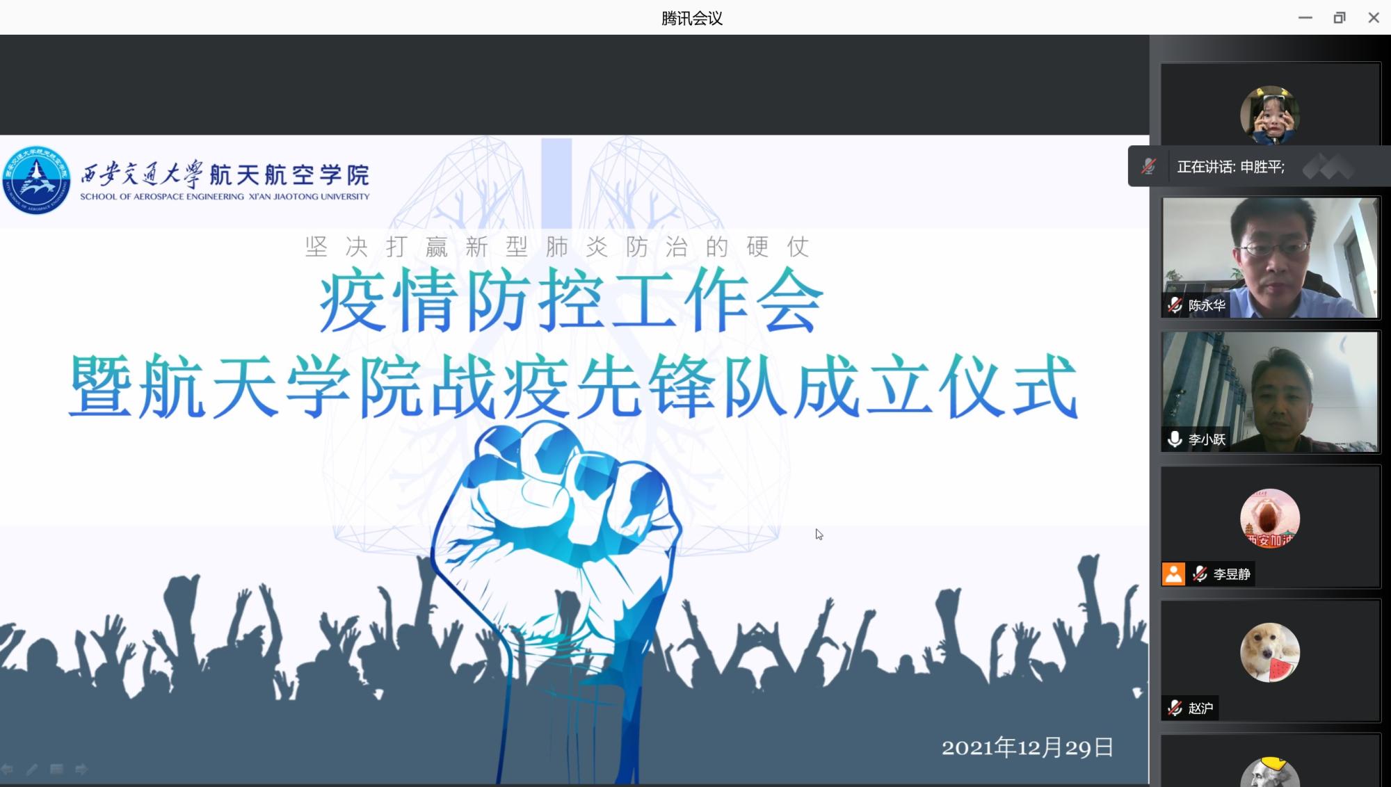 战疫先锋队成立仪式,院长申胜平、党委书记李小跃、团工委书记李昱静、战疫先锋队全体成员以及参与疫情防控网格化管理工作组的所有学生干部参与了此次会议,本次会议由党委副书记陈永华主持。