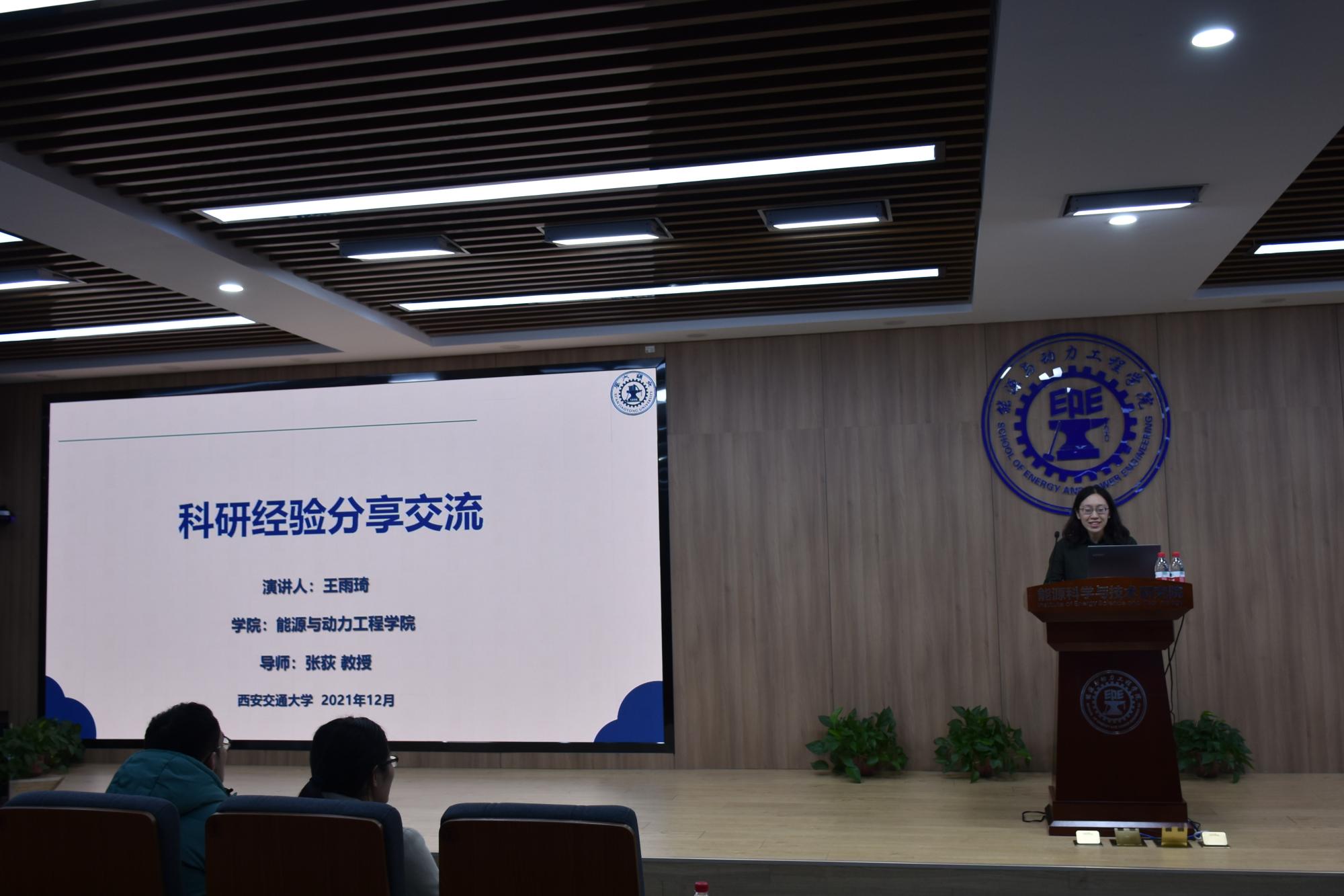 能动学院2021年度学校博士标兵获得者王雨琦讲述了在交大的学习经历。她以自己申报专利和发表论文的经历为例,讲述了她从文献阅读,创新点寻找,再到结合仿真成果写出文章,通过反复的修改终得成功发表的经历。她建议同学们阅读文献时要始终围绕自己研究的侧重点进行选择。