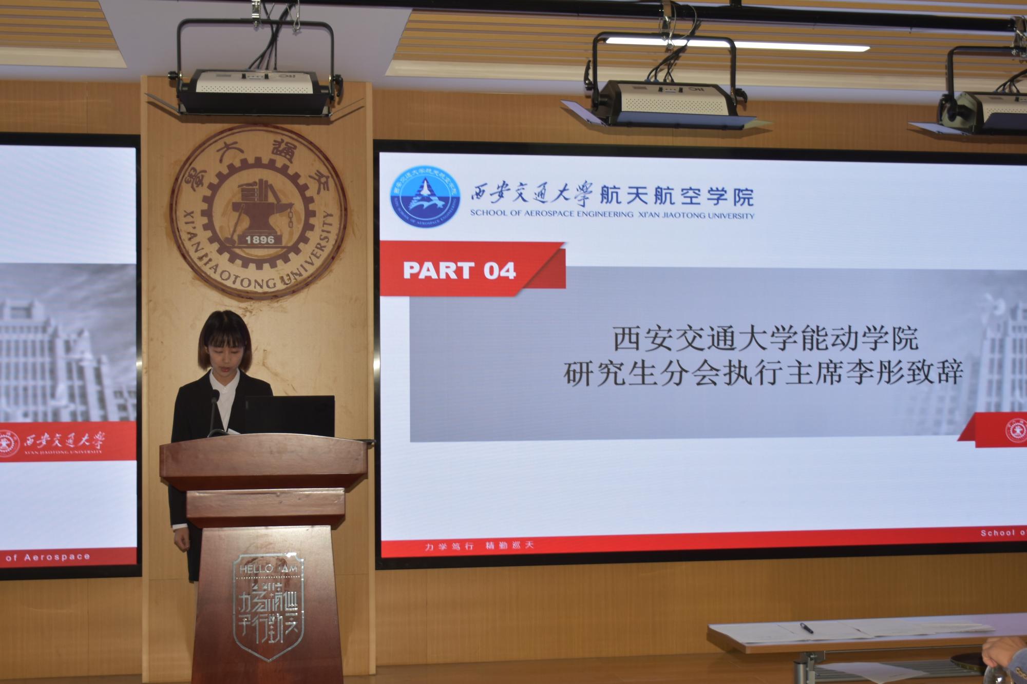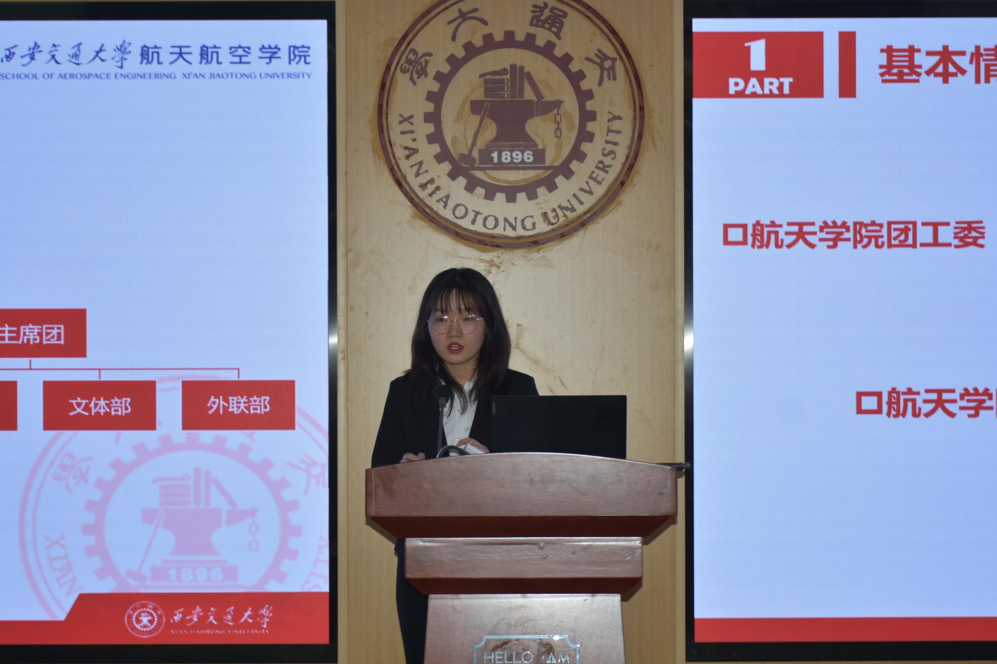 航天学院团工委书记李昱静致开幕词,她提到研究生代表大会是研究生政治生活中的一件大事,对研究生开展自我教育、自我管理、自我服务、自我监督有着重要意义。她希望研究生代表们行使民主权利,成为民情民意的“检测器”、利益诉求的“收集器”和上情下达的“链接器”。