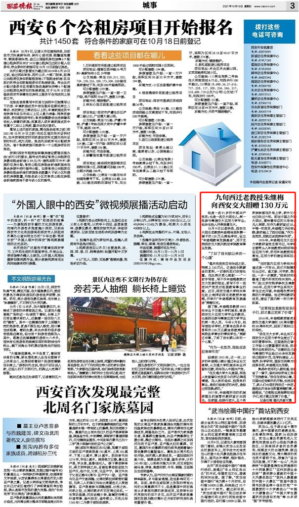 赠予130万元设立“朱继梅教育发展基金”,用于支持西安交大奈飞工厂