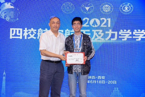 张雯蕾同学、大连理工大学骆嘉晨同学、清华大学杨鹏飞同学、浙江大学布热比·依明同学。杨卫院士为四位同学颁发了获奖证书,并表示了祝贺。