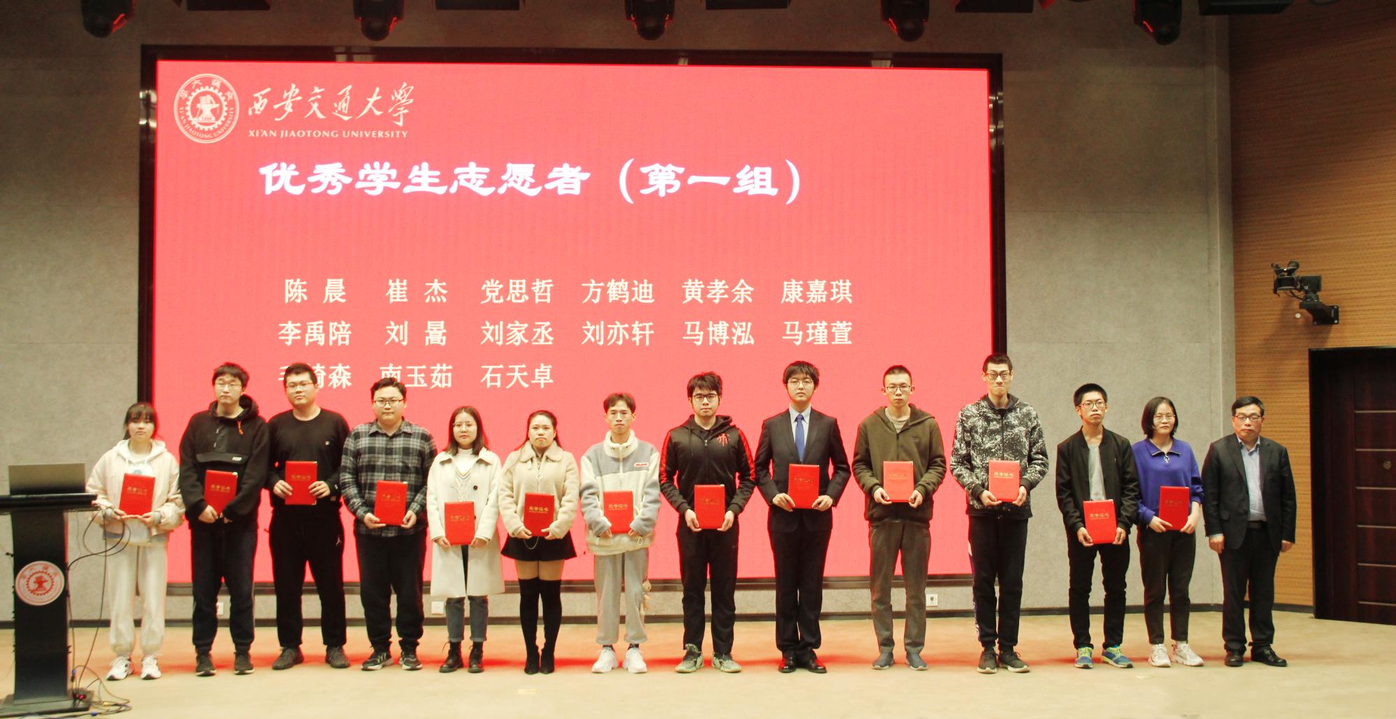 招生办副主任宋红霞宣读《关于表彰2020年招生工作先进集体、先进个人的决定》,郑庆华,学校招生委员委员、钱学森学院常务副院长杨森,王秋旺分别为招生宣传工作先进集体、进步集体、单招先进集体、优秀校友集体、优秀招生专员、先进个人、优秀学生志愿者颁发了奖牌或奖状。因工作关系,优秀校友们未能到场,奖状将在会后通过其他方式送达。