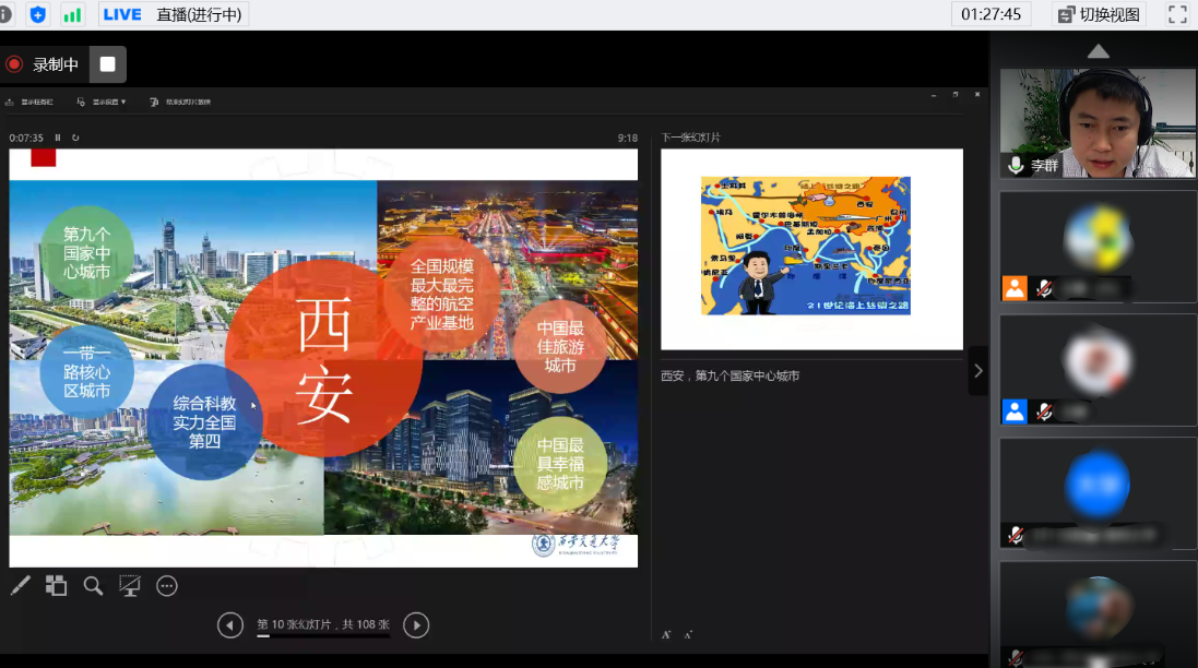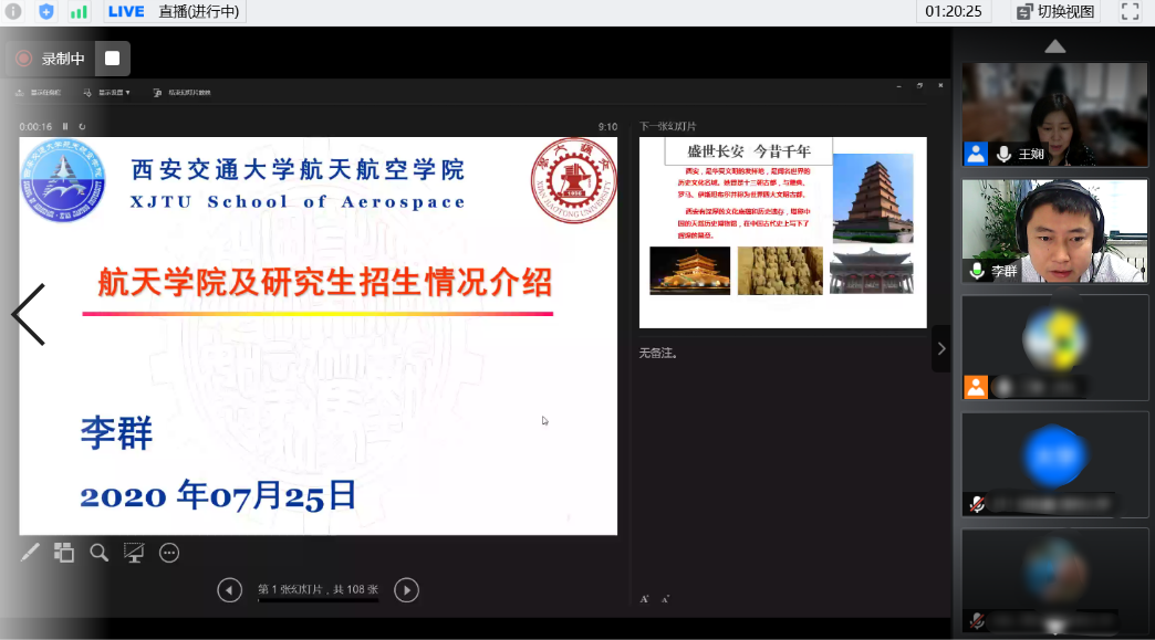 接着,副院长李群教授全面介绍了学院情况以及学院研究生招生情况。他先从西安的历史文化讲起,再向同学们详细讲解了交通大学的发展历史、历史底蕴、科研设施、创新港等,最后对奈飞工厂