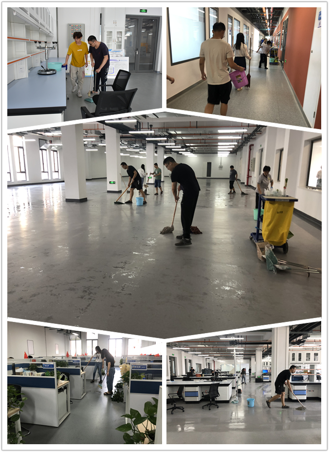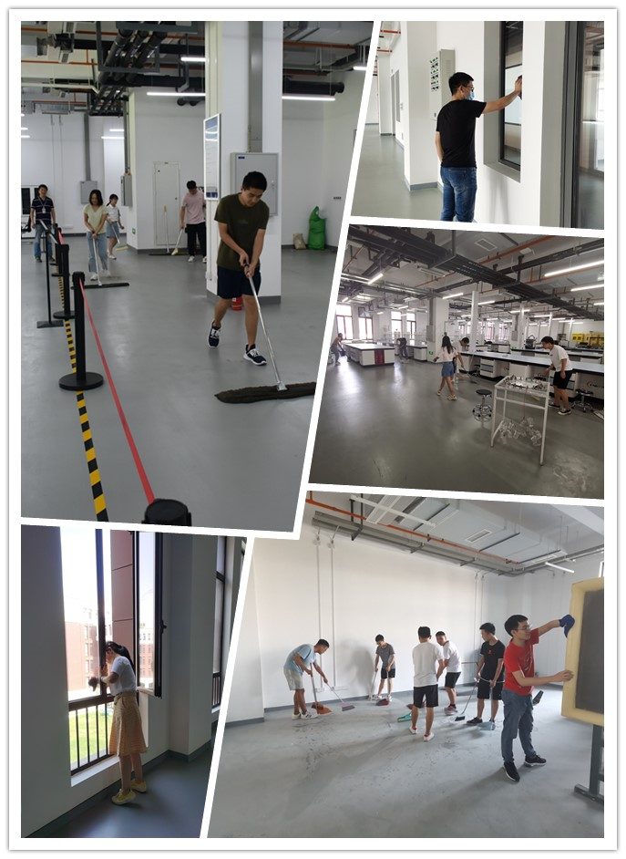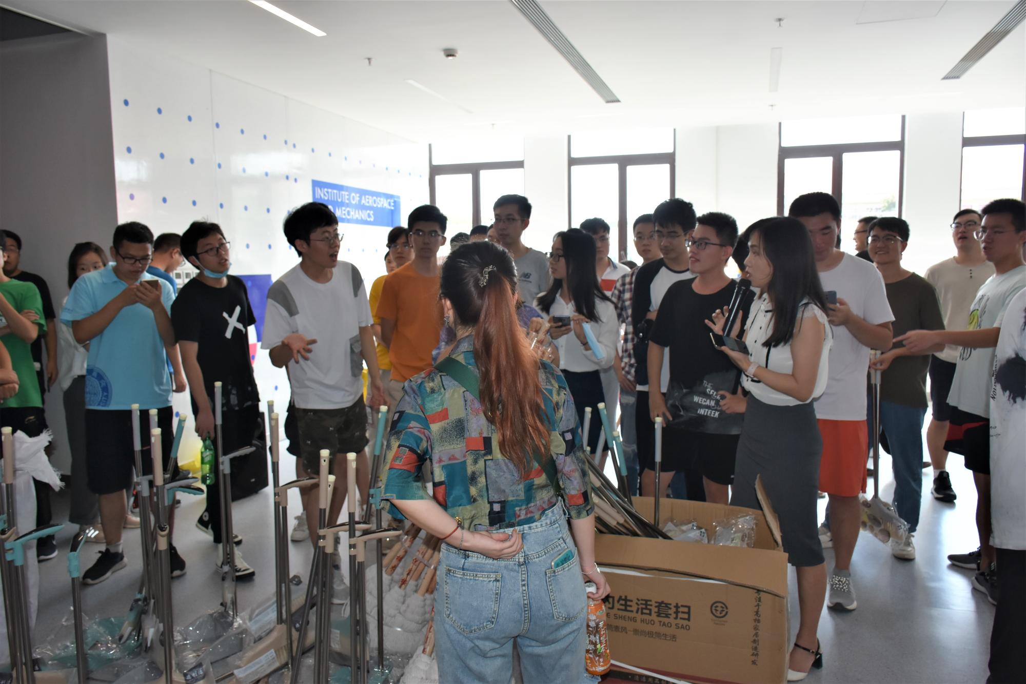 研究生近200人组成25个劳动小组分别对空天与力学研究院25个公共区域和研究平台进行环境卫生清扫清洁。