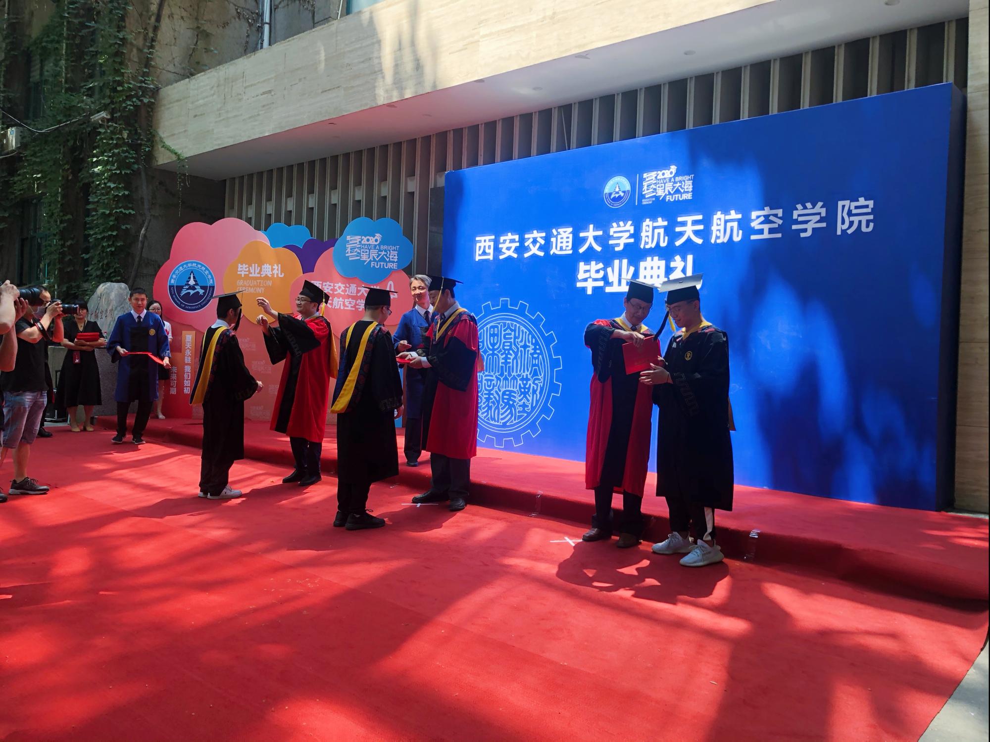 硕7075班周俊辰代表研究生毕业生发言,他表示,感谢交大的培养,让他坚定的继续在祖国最需要的地区从事航天领域科研工作。他表态将以更严谨的学术态度,更高格局的人生规划来践行西迁精神,在今后的工作岗位上踏踏实实做研究,精益求精搞制造,为建设科技强国、空天强国贡献自己的力量,用奋斗书写新时代最美的华章!