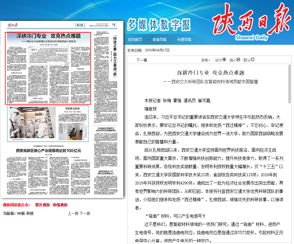 报道链接://esb.sxdaily.com.cn/pc/content/202004/27/content_724915.html