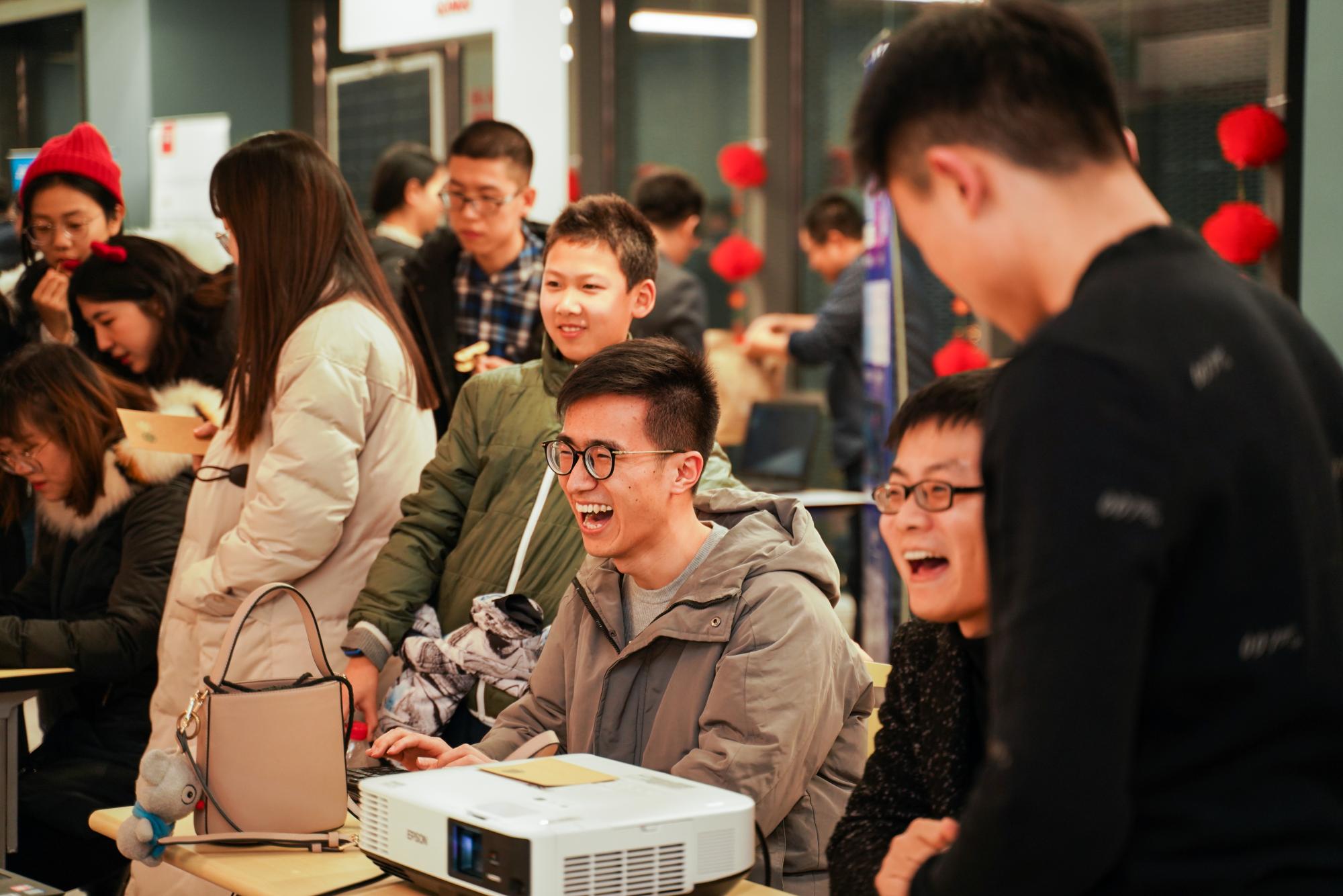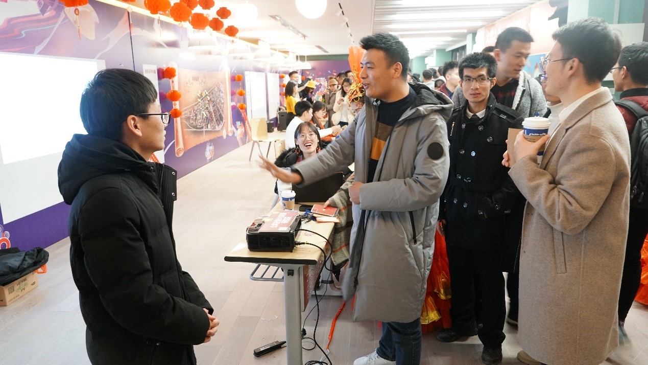 “交大新港奇幻之旅——新港鼠年拯救记”游园会主题系列游戏活动以故事的形式设置四个游戏环节,内容与三个学院各自学特色科、创新港生活紧密结合,构思巧妙,趣味横生!融合“你画我猜”“寻宝”两种经典游戏,新增了投屏双人对战、模拟飞行游戏等具有科技感的游戏,充分考验同学们的肢体表达、逻辑思维以及同学间的默契配合,在元旦前夜体验多层次、富有挑战的“探索之旅”。新港鼠年标志着创新港的元年,闯关象征着创新港元年的诸多机遇和困难,战斗象征着交大师生百折不挠的奋斗精神,最后的腾飞阐释着在全校师生的共同努力下交大定会成为世界明珠。
